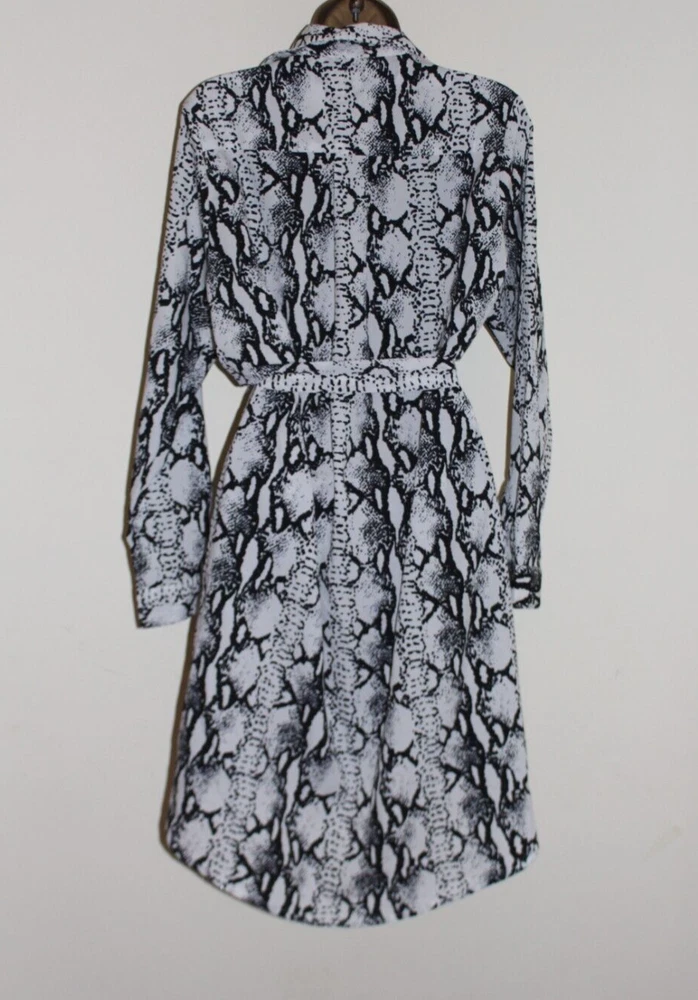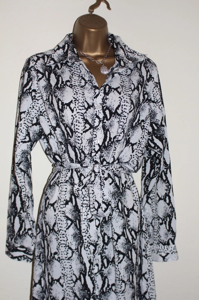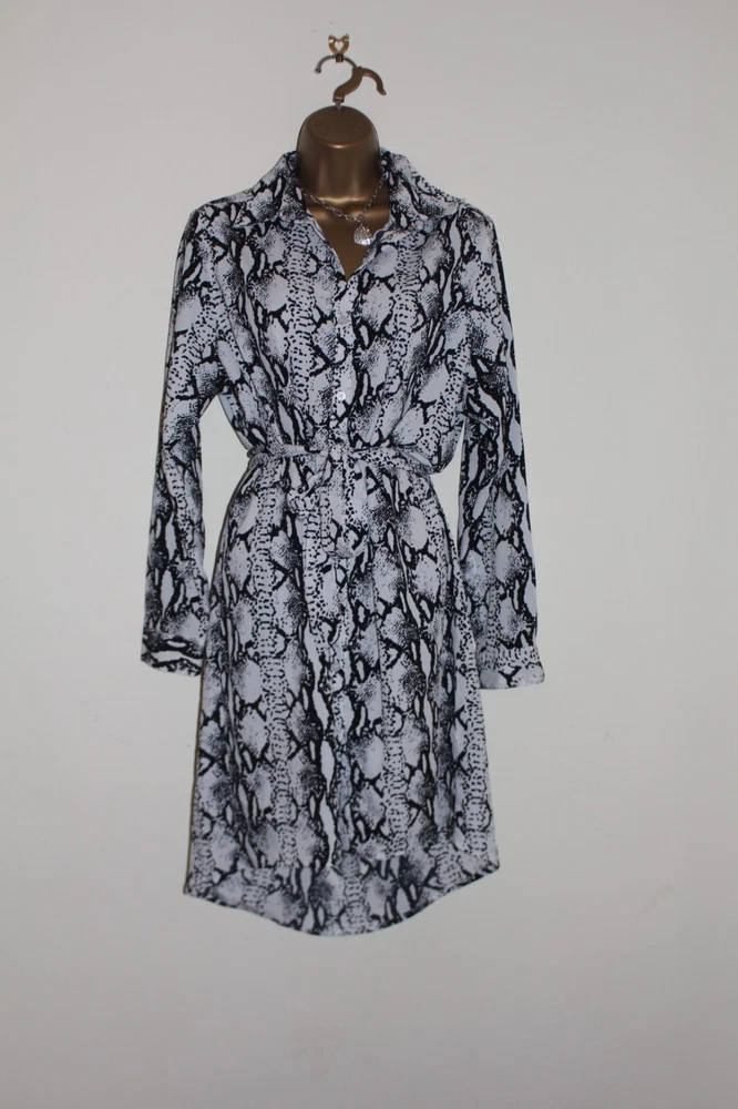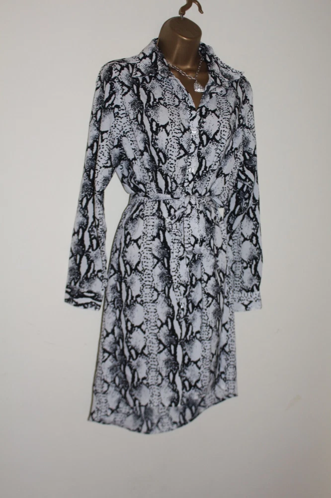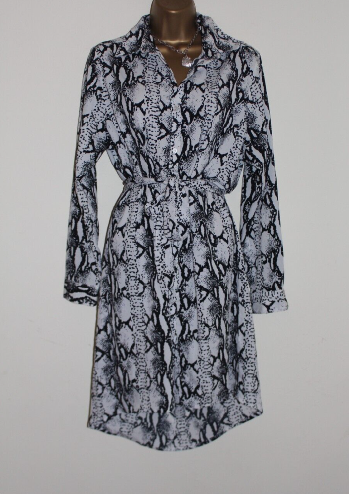 Stunning Authentic Dancing Leopard Mini Shirt Dress @ Silk Fred in snake print Size L very good condition Very rare dress! Sold out in days ! Colour - multi Button front Long sleeves ties with belt dipped hem measurements approximately chest pit to pit 58 cm when laid flat waist - ties with belt length 86 cm at front length 100 cm back polyester washable made in India sod out! rare find! don't miss out I can combine postage Sorry, no returns Non smoking home Happy shopping Save the environment - buy preloved !