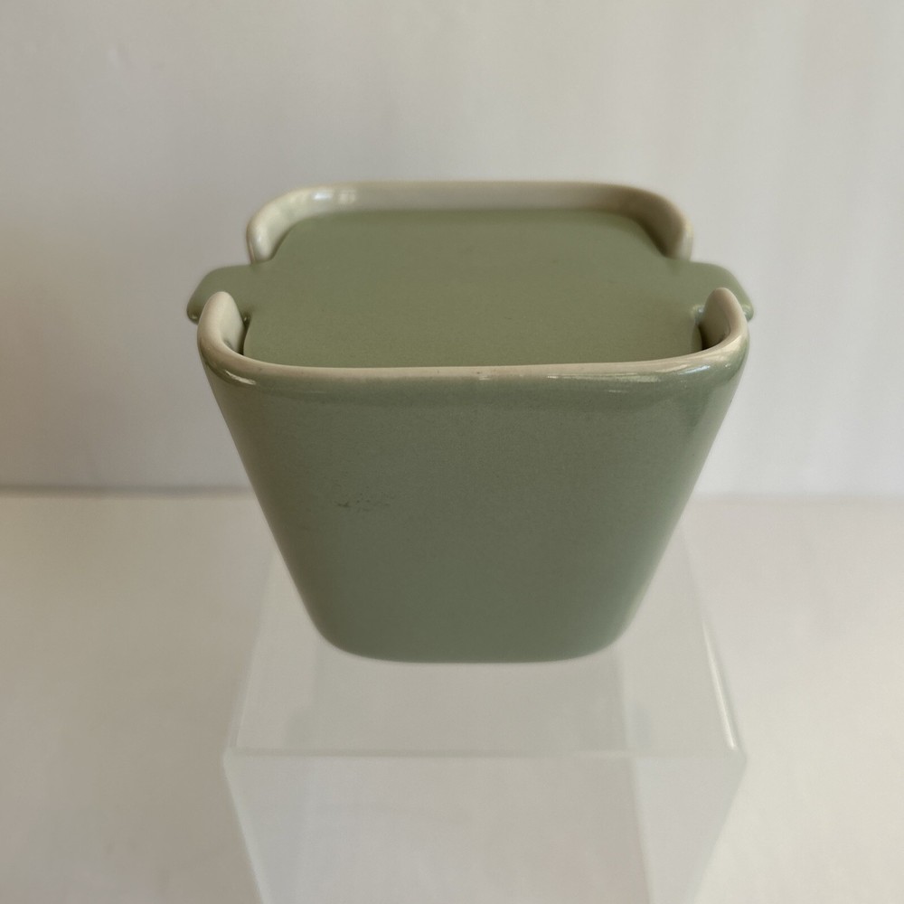 This Dansk sugar bowl and lid set is a perfect addition to your collection. The Graves Studio Fern Indigo Sage Green Sugar Bowl & Lid features a solid pattern, square shape, and a beautiful matte finish. The sugar bowl is made of ceramic material and comes with a printed backstamp. The set includes a sugar bowl lid and is a licensed reproduction of the original Dansk product line. This elegant sugar bowl is suitable for all occasions, and its contemporary design adds sophistication to your table setting. Measuring 4" in diameter, 3.5" in depth, and 3.25" in height, this sugar bowl is perfect for adults and complements any decorative cookware, dinnerware, and serveware. Add this stylish piece to your pottery and glass collection today. Location: From a smoke free and pet free home. FAST shipping in the USA (International shipping offered through GSP) 100% Money Back Guarantee Any questions feel free to contact me before buying. If there is a problem with your order please contact me before leaving negative feedback so we can work together on a solution. My small business is very important to me and I work hard to maintain my positive feedback. Sheila