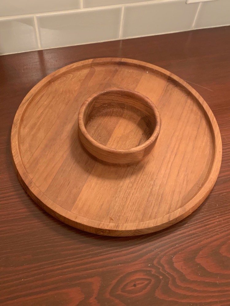 Very Clean Dansk Teak Wood Chip & Dip Tray.. Classic Mid Century Design by Jens QuistGaard... Condition: Very Clean with NO Chips, Dings or Cracks.. No Glass Bowl although many others fit. Size: 12.50...