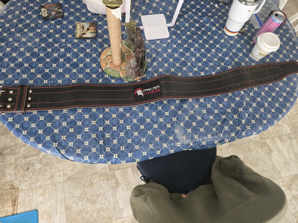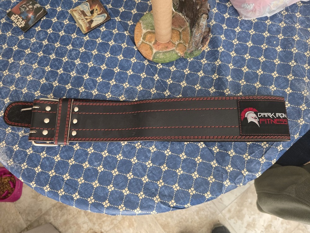 The Dark Iron Fitness Dip Belt is a high-quality, XL-sized weight lifting belt made of red and black leather. Designed specifically for weight lifting, this dipping belt provides additional support during exercises like dips and chin-ups. The padded material ensures comfort during workouts, while the fast and free shipping to the USA makes it convenient for fitness enthusiasts to improve their strength training routine. The Dark Iron Fitness Dip Belt is a reliable tool for enhancing your fitness journey.
