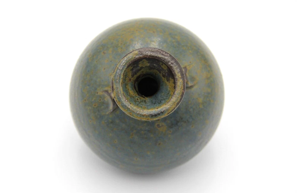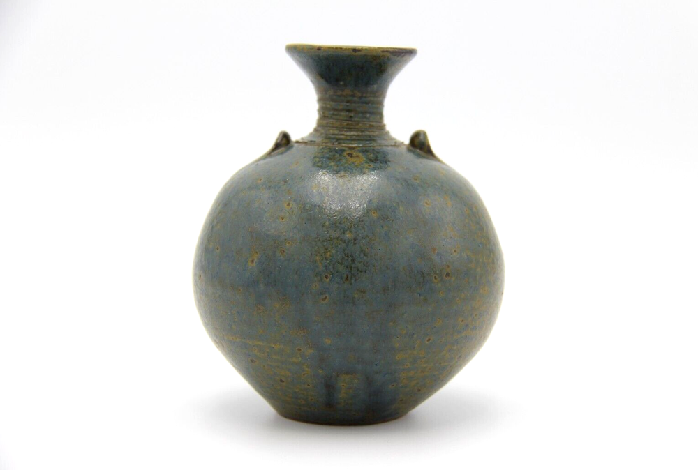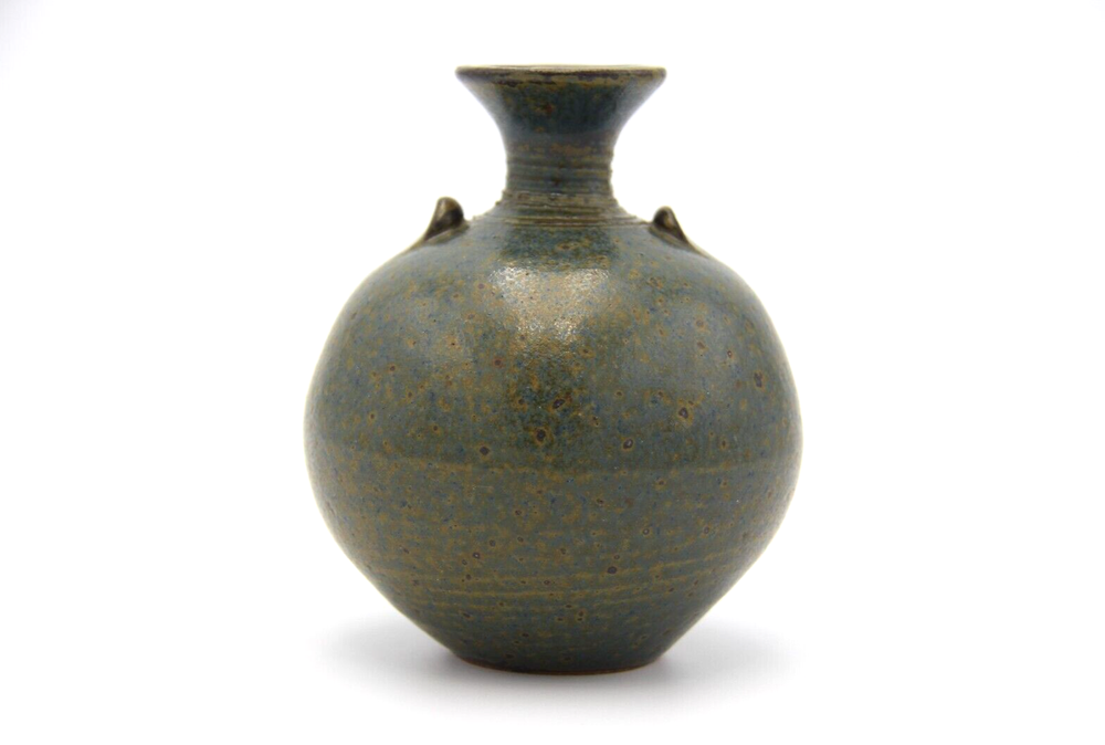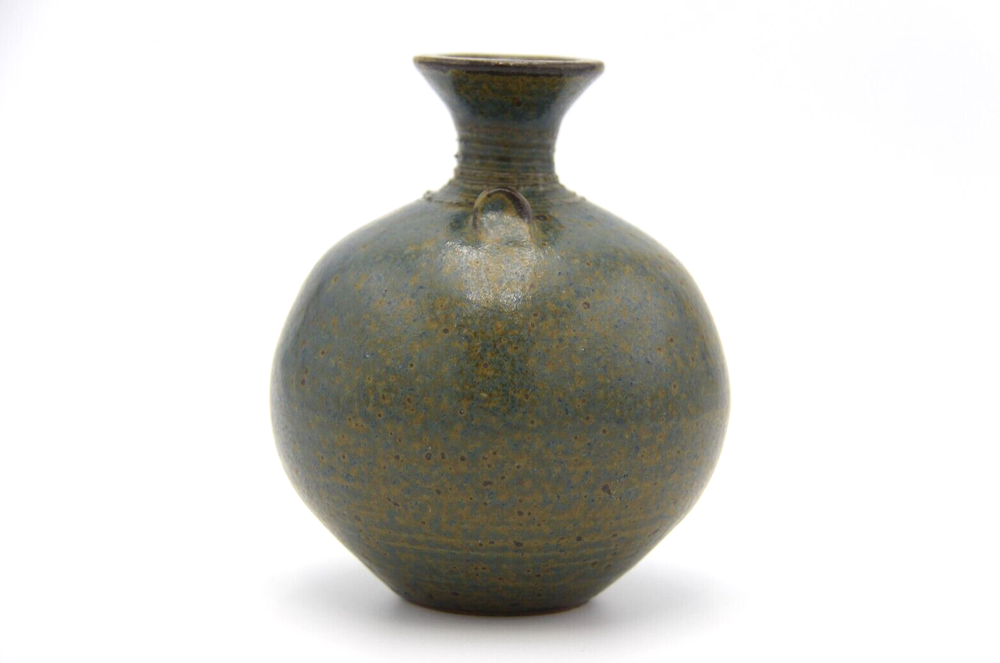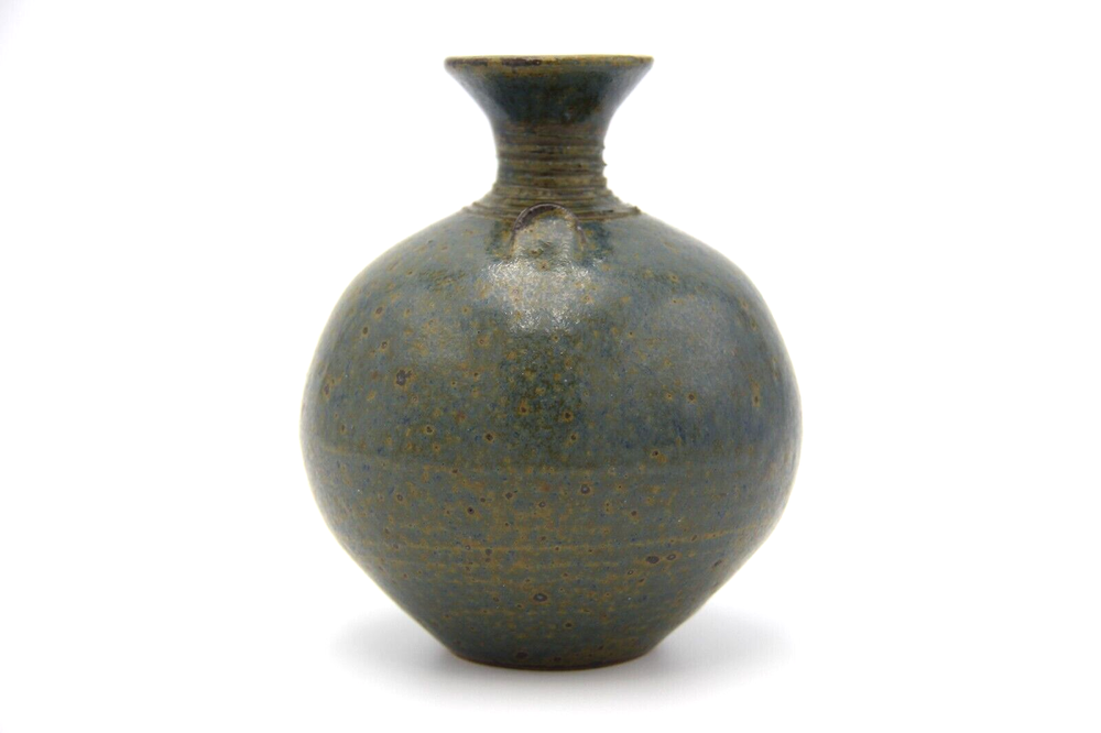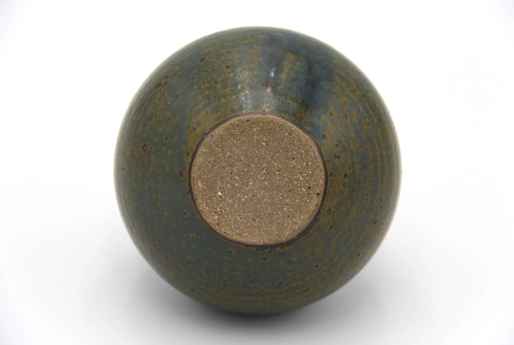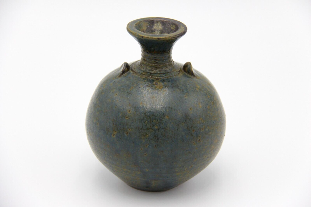 Dark mottled slate coloured bulbous shaped pottery vase with long neck. Great condition with no chips or cracks, general wear consistent with age. Measurements are approx. 10cm x 12cm. Please refer to photographs for visual condition as they are part of the description and check item specifics for more information about item. Shipping can be combined on multiple purchases. Please request invoice first before paying for adjusted shipping once buyer has committed to sale by clicking buy on each item (this may not be possible if using the eBay app). Please do not hesitate to contact me if you have any questions. Buyers please note that all items are carefully washed, cleaned, wiped or polished prior to photographing and from a smoke free home.