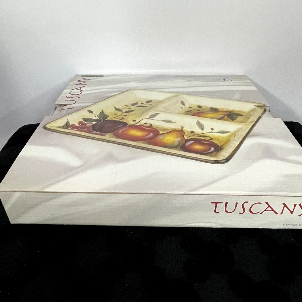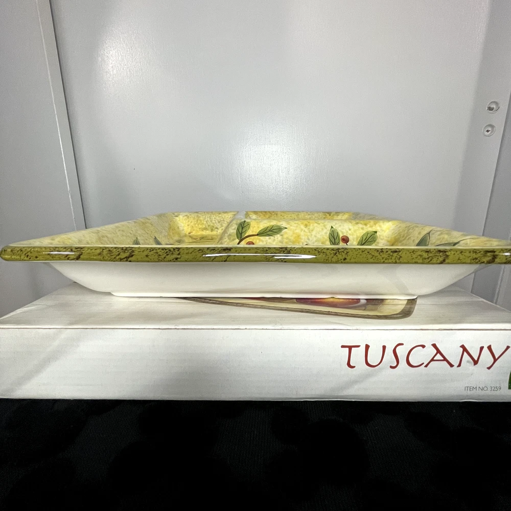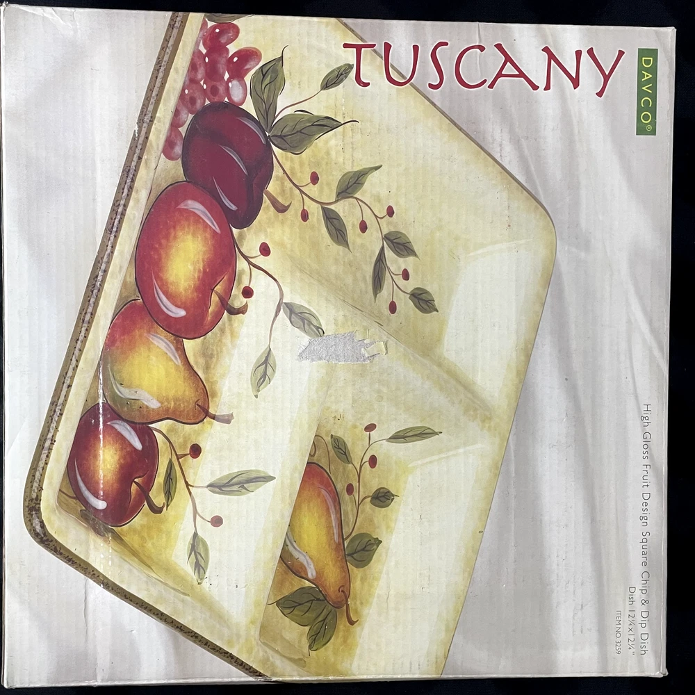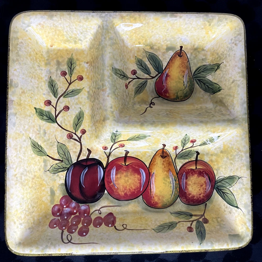 Elevate your next gathering with the Davco 'Tuscany' Square Chip & Dip Platter, a piece that marries functionality with vintage charm. The high gloss finish brings out the intricate fruit design, creating a captivating visual that's sure to be a conversation starter at any event. With dimensions of 12 1/4 inches on each side and a depth of 3 inches, this ceramic platter offers ample space for your favorite snacks and dips. This large, square serving dish features two compartments, making it easy to organize your snacks and sauces. The tray is designed for all occasions, whether it's a casual game night or a sophisticated dinner party. The 'Tuscany' series is known for its Italian country-style theme, and this platter is no exception, adding a touch of European flair to your table. This is a unique vintage item, possibly delicate. It will be packaged with the utmost care, placed in an appropriate box, and generously padded to help ensure its safe delivery. ------------------------------ ---- Store Policies Returns All items are sold As-Is, which means they are sold in their current condition at the time of sale. As-Is implies that the buyer accepts the item in its current state, including any defects or issues that may not be immediately apparent. The seller is not responsible for any hidden or undisclosed issues with the item, setting clear expectations and helping prevent disputes. Unless otherwise specified, all items sold are final sales, meaning they cannot be returned or exchanged once purchased. We will not provide refunds based on condition, and partial refunds, credits, replacements, or exchanges are not permitted. This policy is in place to ensure clear expectations and prevent any misunderstandings. However, suppose a significant discrepancy exists between the item's description and actual condition. In that case, we will consider a return or refund on a case-by-case basis. It's crucial to read the item description, including the condition thoroughly, and carefully examine all photos. These photos are a key part of the condition report, providing significant condition information that aids in making an informed decision and minimizes the risk of misunderstandings. We want you to feel empowered with the information you need to make a confident purchase. We are deeply committed to providing honest and transparent descriptions of each item. We want you to feel confident that we strive to offer accurate information about our products. However, it's important to note that we are not experts in any field. All measurements are approximated. New-in-box and factory-sealed items are obviously untested. Wear must be expected with all pre-owned items, consistent with usage and age, such as discoloration, scratches, scuffs, dents, cracks, chips, holes; loose threads and stitches; edge and corner wear; box wear; oxidation; dirt; dust; odors; other residue; owner-added markings; and signs of repair. Timepiece movements, lighting, electronics, and mechanical items are NOT tested for functionality unless noted. They should be considered in 'for parts and repair' condition, meaning they may not be fully functional and require repair or parts replacement. This condition is often used for items that are sold for their parts or for buyers who are willing to invest in repairs. Art has not been examined out of the frame unless otherwise stated. Please contact us before purchasing or bidding if you have any questions. We are deeply committed to providing excellent customer service and are here to assist you. Your satisfaction is our goal, and we want to ensure you have all the information you need to make a confident purchase. Warranty Items tested and working at the time of listing are not guaranteed, and there are no warranties. We do not offer any technical support. Any certificates and markers of authenticity referenced in this listing are assertions of authenticity by the manufacturer, production company, or a third party, as noted. We deeply respect your safety. Therefore, we strongly recommend that a professional inspect any items used for safety before usage. Your safety is our top priority. All collectibles are intended for display only, and using any purchased goods for dangerous or illegal activity is strictly prohibited. Shipping eBay calculates the postage based on: Dimensions of the box Weight including all packaging material Your zip code Carrier & service you select Please note that we do not entertain requests for reductions in shipping prices. We pack items generously with appropriate padding to help ensure the package arrives in the same condition we shipped it. Some items may even be double-boxed to protect delicate items from breakage. While this may add to the package weight and dimensions, we will not take chances by using less packaging material to save money on shipping. If any item you purchased arrives broken or damaged in transit, you must inform us immediately upon receiving it and provide us with proof of damage that we can submit to the carrier. You will be responsible for the following: Save the original packaging and everything in the package until the claim is settled with the carrier. You must provide clear photos of every part of the box - including the label. You must provide clear pictures of the package contents, showing the extent of the damage. Do not discard damaged items, even after you photograph them. Retain all evidence until the claim is resolved with the carrier. Save any undamaged items with the damaged items. You may be asked to take the entire package to your local Post Office or carrier facility for their inspection. The carrier may hold you responsible for providing an estimate of repair costs from a reputable dealer. Failure to provide the information required to make an insurance claim with the shipping carrier may result in you not receiving a refund.