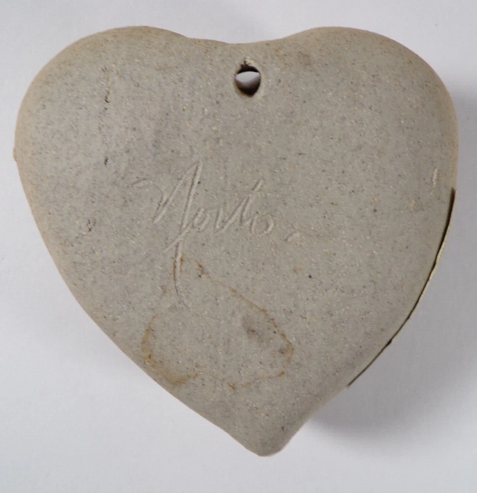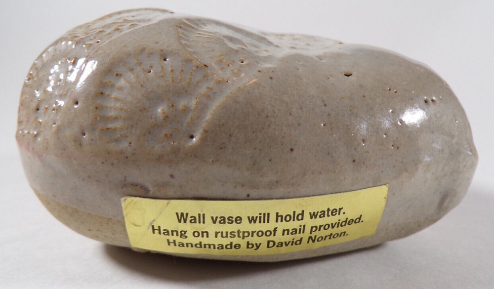 David Norton Pottery Heart Shaped Wall Vase Signed Approx. 3.5" high, 3.5" wide, 2" deep Very good condition David Norton is a self-taught, full-time potter from Round Hill, Virginia, making functional stoneware pottery and ceramic sculpture for over 40 years. He has had his own handmade pottery gallery in the Torpedo Factory Arts Center in Alexandria, Virginia, for most of that time. David has work in collections in over 85 countries. He has exhibited and taught at the Smithsonian’s Renwick Museum, and given extensive workshops in Venezuela, Poland, and in the Washington, DC area.His work has twice received acclaim by The New York Times, and The Washington Post as well as being voted the best local artist by readers of the Loudoun Times Mirror. Norton keeps in touch with aspiring young artists by volunteering each year to give pottery workshops for some of the many art teachers he has come to know in the county.