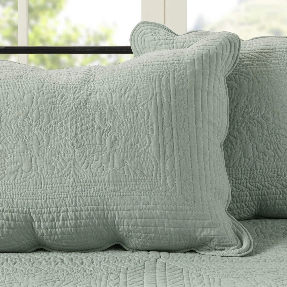 Cottage Daybed Cover Set: Elevate your décor with charming farmhouse elegance daybed covers, featuring embossed damask quilting & a scalloped edge. Complete with matching shams, bedskirt and décor pillows; it's perfect for a coastal modern update Cotton Filling Duvet Cover: Embrace the softness of pre-washed brushed microfiber and cotton filling in this lofty, all-season duvet cover set, perfect for cozy snuggles. Easily fit twin size bed; perfect for your guest bedroom Quality Feel: The Tuscany quilt set features high-quality stitching and material, elegant damask quilting to prevent clumping, and hygienic treatment for lasting freshness, ensuring comfort and warmth for years to come WHAT IS INSIDE? - 1 Oversized Daybed Cover: 39"W x 75"L + 17"D, 3 Standard Shams: 20"W x 26"L, 1 Bedskirt:39"W x 75"L + 15"D, 1 Decorative Pillow:16"W x 16"L DURABLE & EASY CARE: Our microfiber quilt set offers durability to withstand daily wear and tear. Simply machine wash cold. Gently and separately. Do not bleach, Tumble dry low. Iron on medium temperature if needed
