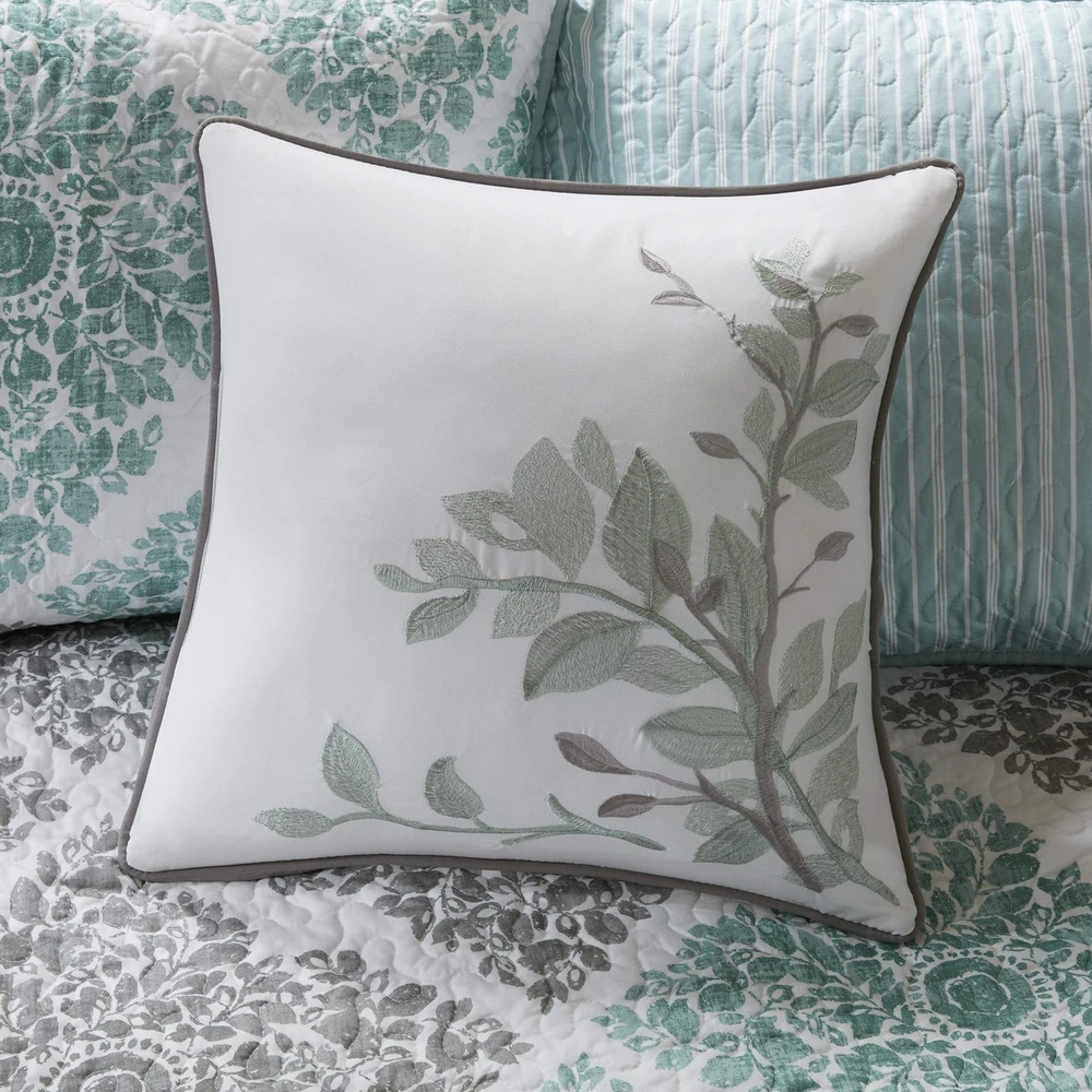 Printed Daybed Set Includes: daybed cover, 3 reversible shams, bedskirt, dec pillow Day Bed Cover/Sham: 100% polyester printed face and back, 240g/m2 90% cotton, 10% polyester Bedskirt: 100% polyester printed, 100% polyester platform Pillows: 100% polyester shell, polyester fill 1 Daybed Cover:75x39" 3 Standard Shams:20x26" (3) 1 Bedskirt:39x75+15" 1 Decorative Pillow:18x18" MACHINE WASH COLD, GENTLE CYCLE, AND SEPARATELY. DO NOT BLEACH. TUMBLE DRY LOW, REMOVE PROMPTLY, DO NOT IRON. IF THERE IS NO FREE MOVEMENT IN THE WASHER OR DRYER, USE LARGE CAPACITY COMMERCIAL WASHER/DRYER.