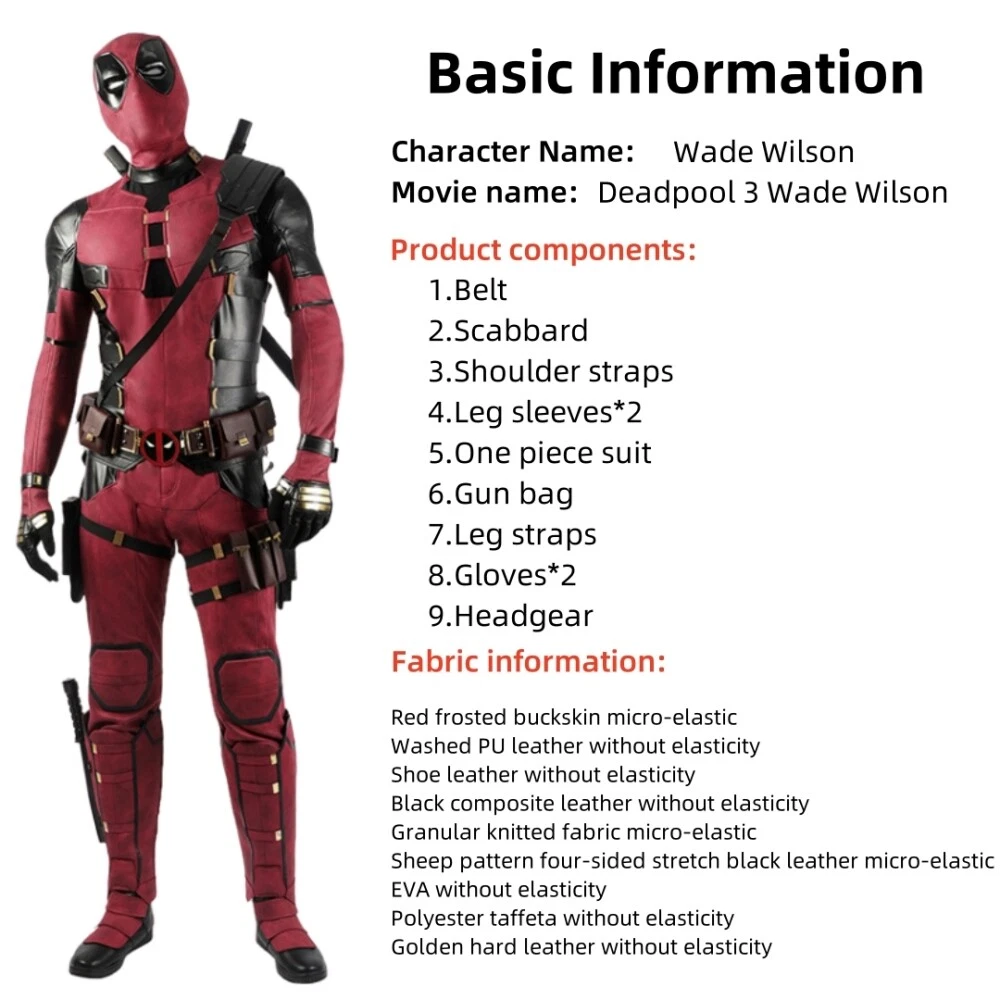 🎃 Important point: 💗 The Cosplay Costume is pre-ordered, which will take more than 40 working days to ship after receiving your payment, please place an order carefully . 💗 For customize , please choose the custom-made option, after placing your order, please email us your measurements like Height, Weight, Chest, Hips, and Shoulder-Breadth . 🎃 Descriptions: TV/Anime/Movie/Game: Deadpool 3 Character: Wade Wilson & Wolverine Features: Wearable Color: Red(as shown) Gender: Adult Unisex Material: PU leather + Fabric Size: Regular size/Custom made, Fits for Adults. 🎃 Package includes: (Due to logistics control, weapons cannot be shipped. Please note weapons and shoes are not included) Deadpool costume: 1*Jumpsuit + 1*mask + 1* Belt + 1* Scabbard + 1* Shoulder Strap + 2*Leg Sleeves +1*Gun Holster + 1*Leg Straps + 2*Gloves Wolverine costume: 2*Arm guards + 2* Shoulder armors + 1*Jumpsuit + 1* Vest + 2 * Gloves + 1 * Belt + 2*Knee pads + 1* Helmet Perfect for Halloween cosplay, role play, dress-up, and theme party. 🎃 Features: 【Premium Material】: This costume is made of PU leather and Fabric, has good stitching and reasonable tailoring, comfortable and non-allergic to wear. 【Highly Realistic】: Our Deadpool Costume is inspired by the Deadpool 3 Wade Wilson, 100% brand new, highly simulated colors and realistic details. 【Muitiple Occasion】: Suitable for Halloween cosplay performances, Masquerade Parties, Christmas Parties, Theater Play, etc. 【Customer Guarantee】: if there is any problem, please contact us immediately, and we will deal with it for you as soon as possible. 🎃 Size chart: 🎃 Notes: 1. Due to manual measurement, the measurement size in the picture is for reference only, and there may be some errors. 2. Due to the different monitor and light effects, the actual color of the item might be slightly different from the color shown in the pictures. Payment Delivery details Returns About us Contact us Payment 1. We accept payment via PAYPAL ONLY . 2. Payment must be made within 7 days of auction closing. 3. Please include the following Information with your payment: Your Full Name, Your Full and Accurate Address, and Phone Number (The post office requires the customer's phone number for International delivery) 4. If you order more(>=10pcs),please free contact us before you pay. We always give buyers a discount. More orders, more cheaper. Delivery details 1. We usually send the packages via SpeedPAK standard shipping within three working days. ( Excludes pre-sale and customized products. ) 2. Please pay attention to our product description , for the pre-sale products , we will arrange the shipment within 30 working days after receiving your payment. 3. If you need express delivery , please message us, and we will send the package according to your requirements, but you have to pay the express fee yourself. Returns 1. We offer 30 days return policy. Please contact us within 14 days from the date you receive your order if you have any issues with the product and would like to return it. (Except for some special costumes, and customized products. Please refer to the eBay platform’s return policy for details.) 2. All returned items MUST BE in the original packaging and please provide us with the shipping tracking number, specific reason for the return, and your eBay ID. 3. We will refund YOUR FULL WINNING BID AMOUNT, upon receipt of the item in its original condition and packaging with all components and accessories included. 4. Buyer is responsible for return shipping cost. 5. If we send the wrong item to you, please contact us and we will take full responsibility and fix it soon. About us Xcoser has been specialized in producing cosplay products with five-star quality for more than six years, including helmets, wigs, clothing, accessories, props, masks, shoes, hats , etc.No matter whether you are a senior coser or a new closer, or just a cartoon fan, you can find character clothing in the store to help you realize your cosplay dream. As long as you ask, we also provide you with customized services to customize cosplay products for you. Contact us 1. Xcoser is a famous cosplay brand in the world. All our products are brand new and high quality. 2. All messages will be replied to in ONE working day . Since we may have a time difference, much appreciate your understanding about the delay.