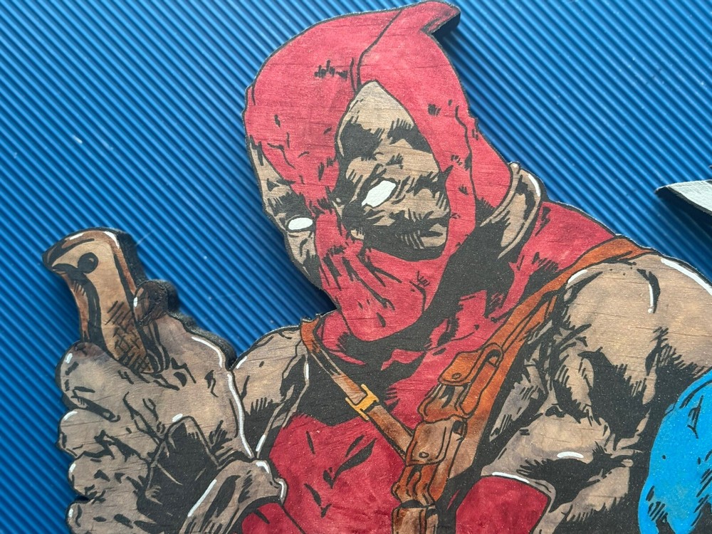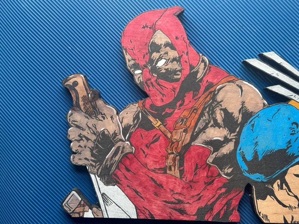 Custom Deadpool and Wolverine wood art. Made from birch wood. Stands on its own. Can fit nicely on a shelf to display or to hang on the wall!...