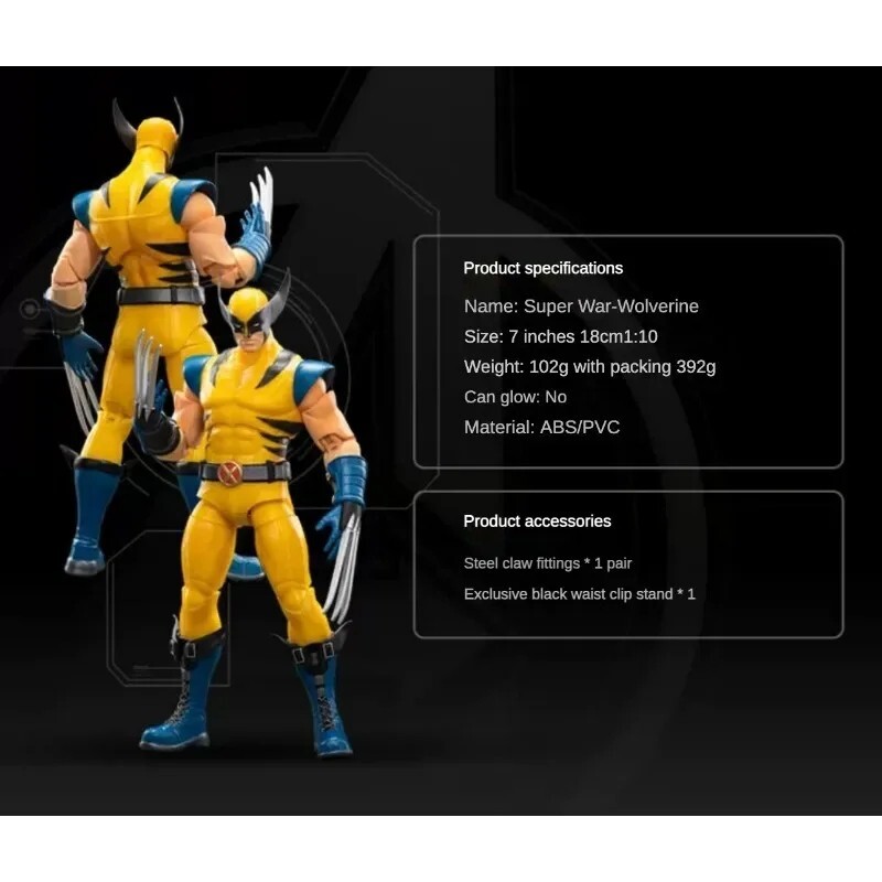 Basic product information: Product specification name: Wolverine Action Figure Size: 7 inches 18cm, 1:10 Can it emit light: No Material: PVC Applicable age: above 6 years old Sales status: spot Animation region: Western Animiation Name of work: revenge alliance film and television animation Package include: 1*Wolverine Action Figure