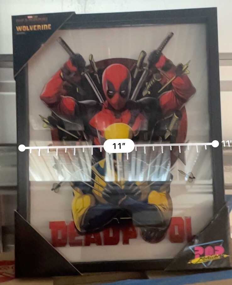Add some superhero flair to your home decor with this framed wall art picture featuring Deadpool and Wolverine. The limited edition poster is an original piece, measuring 14x11 inches and handmade in the United States. The poster is perfect for fans of the Marvel franchise and features the iconic characters in a stylish framed art style. The piece is a single piece and is not signed. The subject is the Marvel franchise and the style is framed art. The poster is an original licensed reprint produced in 2023. Personalize your space with this unique piece of art.