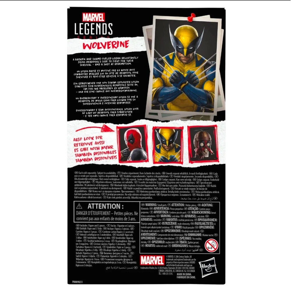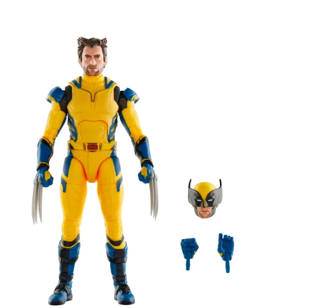 The "Deadpool & Wolverine Marvel Legends 6-Inch Action Figure Wave 1 Wolverine" is a 1:12 scale action figure of Wolverine from the Deadpool franchise. This fully jointed figure of Wolverine, featuring Hugh Jackman's portrayal, is made of mixed materials including ABS plastic and comes in a multicolor design. It is part of a mixed lot collection by Hasbro, boxed and adjustable, perfect for fans of comic book heroes looking to add this original, officially licensed reproduction to their collection.