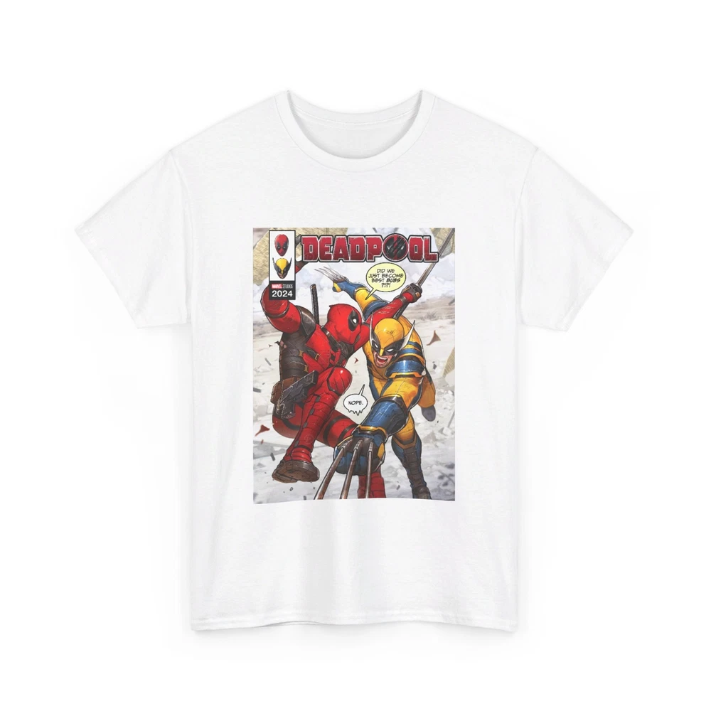 This Deadpool and Wolverine tee is super comfy and well-made! The heavy cotton feels durable yet soft, and the print is super vibrant. Love the no-side-seam design—no irritation under the arms. The classic fit is perfect for everyday wear, and the reinforced shoulders add extra longevity. A must-have for Marvel fans!