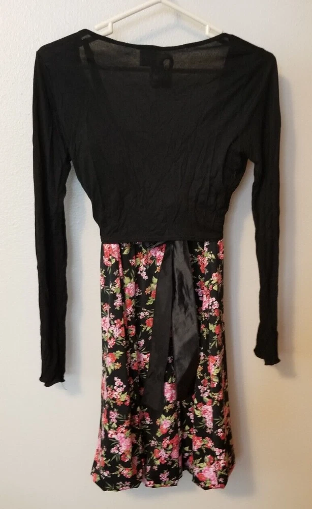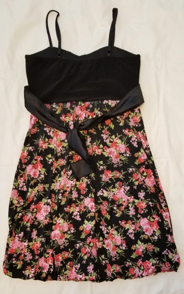 Deb black floral Party Dress with Studio Y black long sleeve shawl. Size Medium. Length 27 from top of back to bottom of hem. 95% nylon & 5% spandex. Adjustable straps. Bubble Hem. Ties in the back. Great condition. B e sure to check out my other auctions! Terms: Payment is due within 3 days after auction ends. If payment can't be made within 3 days, then contact me & let me know so other arrangements can be made or else I will file an unpaid item dispute. COMMUNICATION IS THE KEY! Item is usually mailed the day after payment is received. I ship Monday through Friday. If your package gets returned to me because of incorrect shipping address, you will be responsible for shipping charges to resend the package.