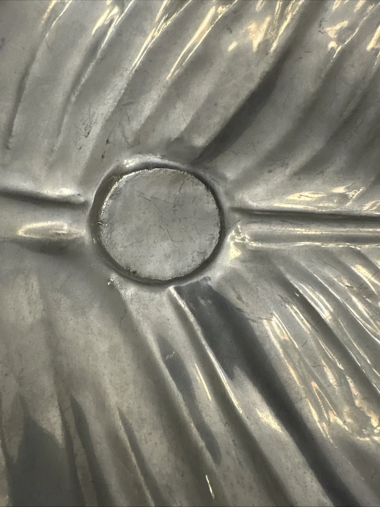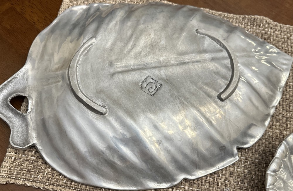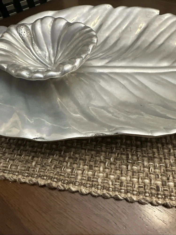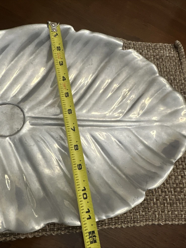 This serving tray is absolutely stunning! The handcrafted aluminum leaf design adds a touch of elegance to any party or gathering. Perfect for chips and dip, it's both functional and a beautiful centerpiece. The size is just right, and the artist's mark gives it a unique, high-quality feel. A must-have for stylish entertaining!