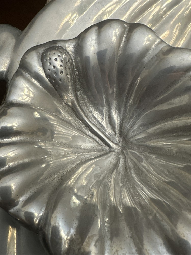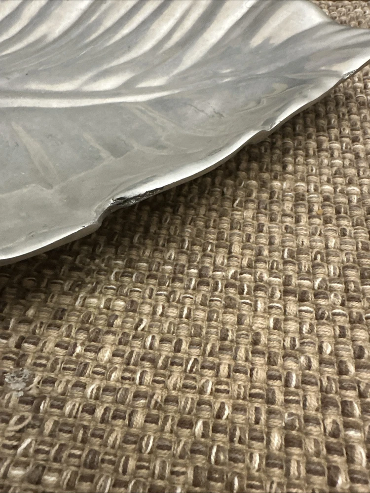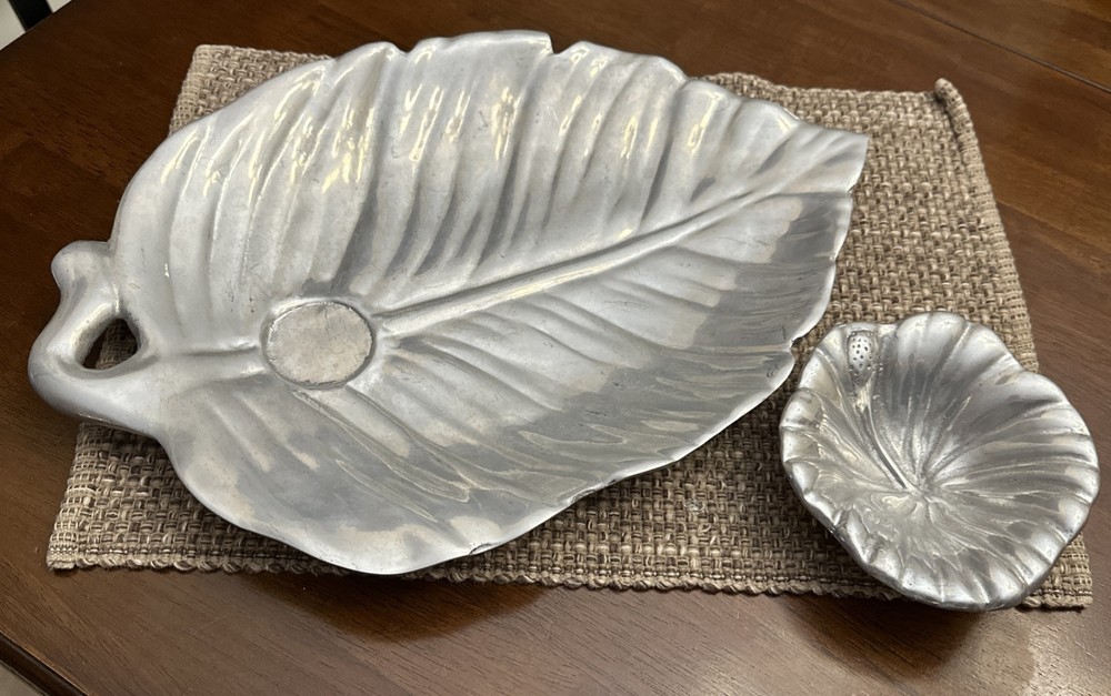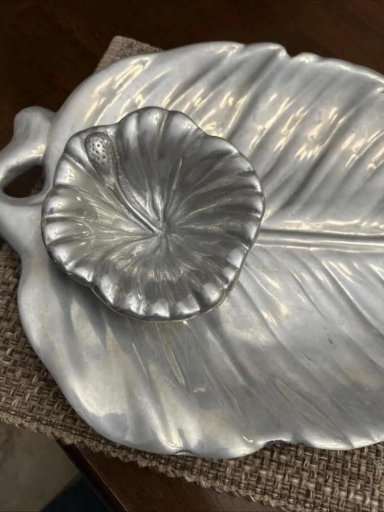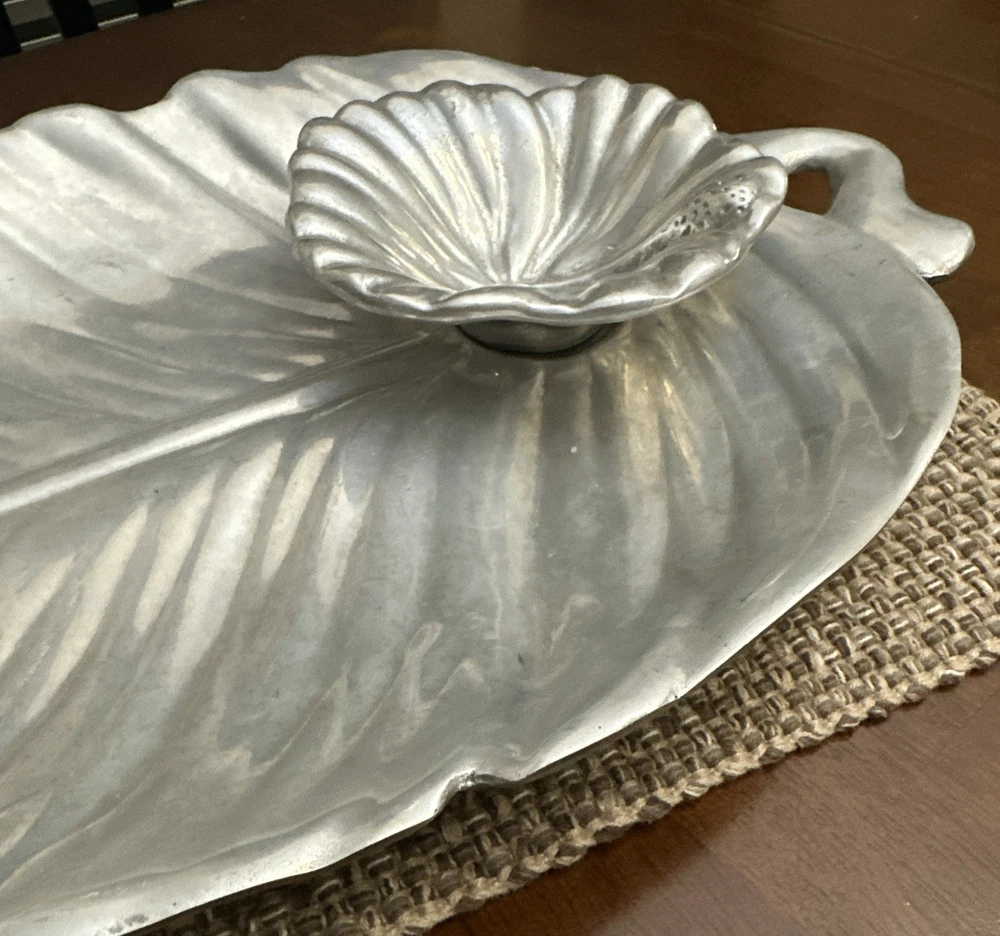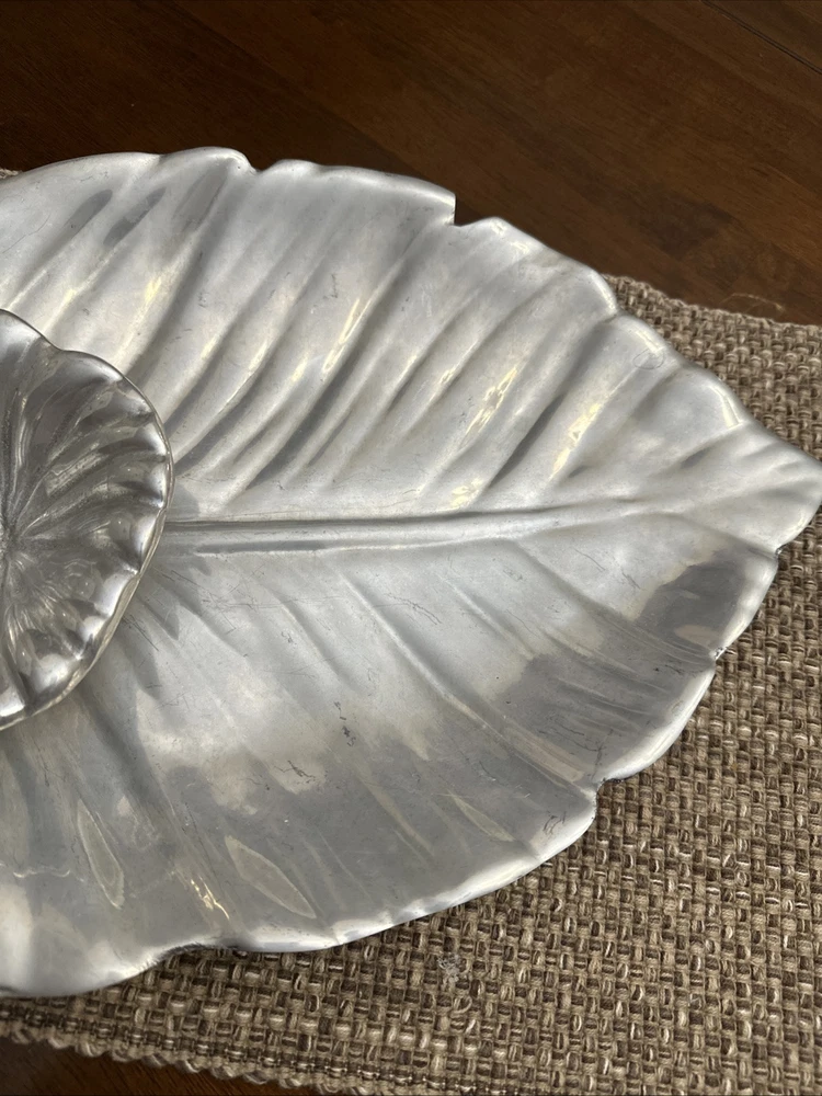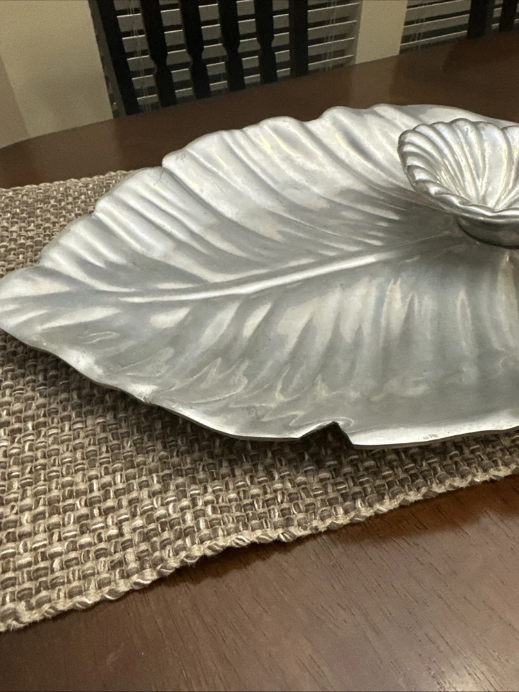 Decorative Aluminum Leaf Shape Metal 2 Piece Chip & Dip Serving Tray Platter Hand made with artist/makers mark. 16.5” X 11.5”...