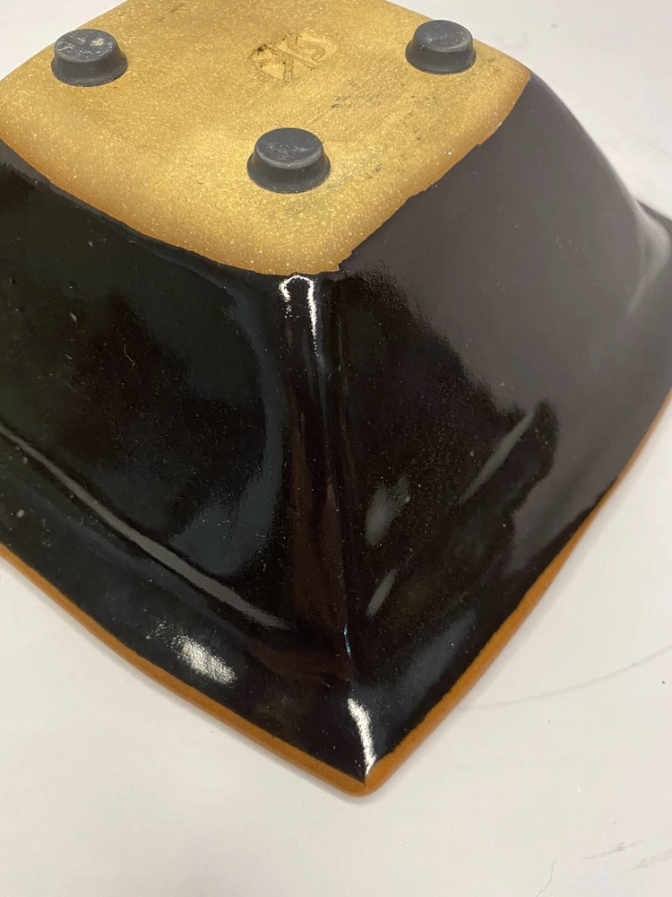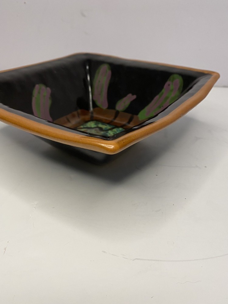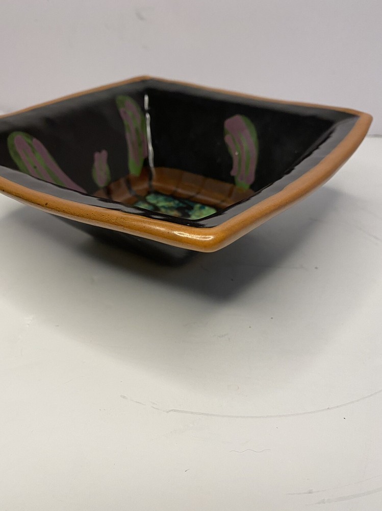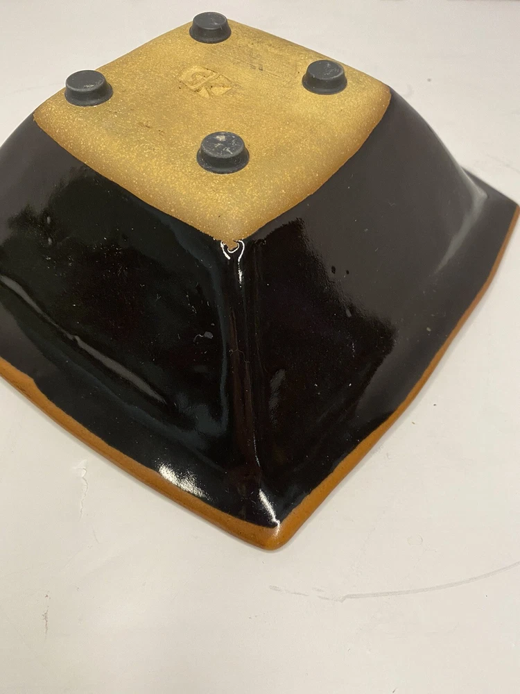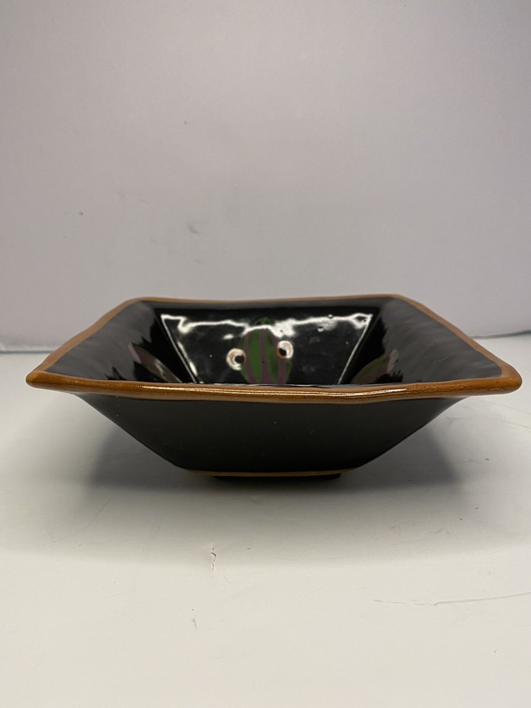 Decorative Marked Pottery Bowl Turtle Design EUC Tortoise S.K.. Excellent Preowned Condition. No chips or cracks. Tiny pits on inside glaze appear to be part of manufacturing process. Inside out tortoise flattened into square shaped bowl (6-3/4” to a side, 2” tall). Cute graphic. Please see photographs. #Handmade #Turtle #Tortoise #Earthtones #Abstract