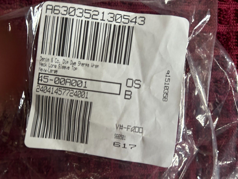 DENIM & COMPANY DIP DYE SHERPA LONG SLEEVEE TOP SIZE LARGE QVC# A630652 in original packaging with tag on it Fabrication: 100% polyester # A630352 Warm & cozy long sleeve sherpa top Features: hem w/ side slit, mock wrap neck, interior back neck seam, long sleeves Seller is not responsible for how this fits the buyer, this is a LARGE in the Denim & Co. QVC sizing. Returns are not accepted if an item does not fit, so please ask any questions before you buy. FABRIC IS 100% polyester. Measures 27 " down center back and about 24 inches pit to pit. No pockets. This top is sold out at QVC in all colors and sizes but you can still watch the video presentation on the QVC website by typing in the item number A630352. SHIPPING ONLY TO buyers located in the United States, I ship within 3 post office working days of payment. Actual delivery date depends on the post office, once I take the package to the post office you can track it online. Delivery is usually between 3 and 6 days from drop off at the post office. No returns so please ask any questions before you buy,
