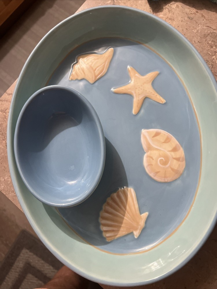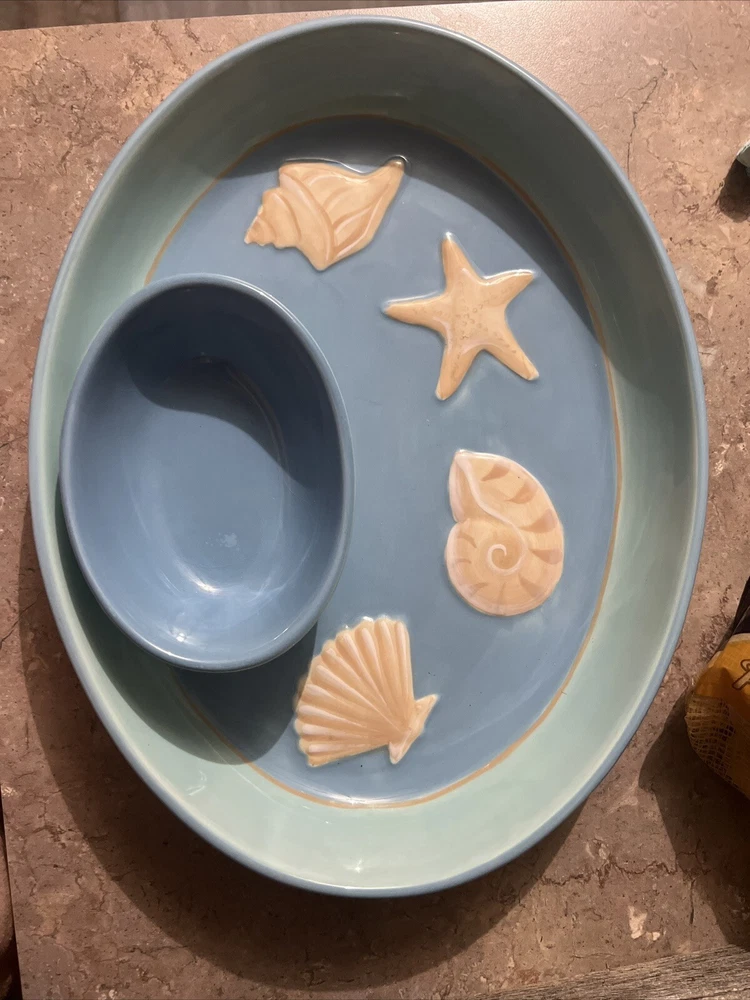 Add a touch of coastal charm to your next event or home decor with this Dennis East Chip and Dip Tray. The oval-shaped tray features a beautiful shells and starfish pattern in multicolor, perfect for all occasions. Measuring 10 inches in diameter and 12 inches in width, this large ceramic tray is perfect for serving chips, dips, and other small appetizers. Crafted with a glossy finish, this tray is not only stylish but also functional. It is an ideal addition to your dinnerware and serveware collection and is perfect for events and gatherings. The tray also features a chip and dip design, making it easy to serve and facilitating cleanup. Made in China, this Dennis East Chip and Dip Tray is a must-have for anyone who loves coastal style and cottage-style decor.