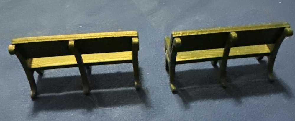 Add a touch of traditional charm to your Christmas village with this set of two wrought iron park benches from Department 56. These green benches are perfect for any room and occasion, including Christmas, holiday display, winter display, dollhouse display, and village train set up. Measuring 2.5 inches in length, 1.5 inches in height, and 1.25 inches in width, they are small enough to fit into any scene. The rectangular shape and vintage style of these benches make them a great addition to any Christmas village collection. They are suitable for teens and adults and are perfect for display during the late 20th century (1990-1999). Whether you're a collector or just starting your Christmas village, these park benches are a must-have. Excellent Pre-owned Collectable Condition Please look at our eBay store for unique collectibles and quality vintage items. Read our Seller Feedback and shop with confidence. See all the photos as they are part of the description and show condition . Item pictured is item that you will receive - except when item has a quantity in which item will be in similar condition to item pictured. If Box and paperwork are included with used item it will be included in the photos. Please note that color may vary due to lighting in the photos. Please ask any and all questions BEFORE purchasing. I try to describe as best as I can and all sales are AS IS. We are not experts on any items and all information is to the best of our knowledge. We do offer combined shipping on orders for multiple items. For Combined shipping simply commit to buy then request an invoice prior to making payment. Payment is expected within 5 days. You may ask for additional time otherwise order is Canceled after 5 days if not paid. Please see all photos to help determine Condition * Thank you for looking at our items!!! * We try to respond to all questions and offers as quickly as possible!! * We ship within 1 business day after the payment is received!! * We are always looking for new items each day to list so be sure to follow our store as listings are updated daily!! * Condition of items are based on our opinions!! High Value items will be shipped insured and may require signature on delivery. J9