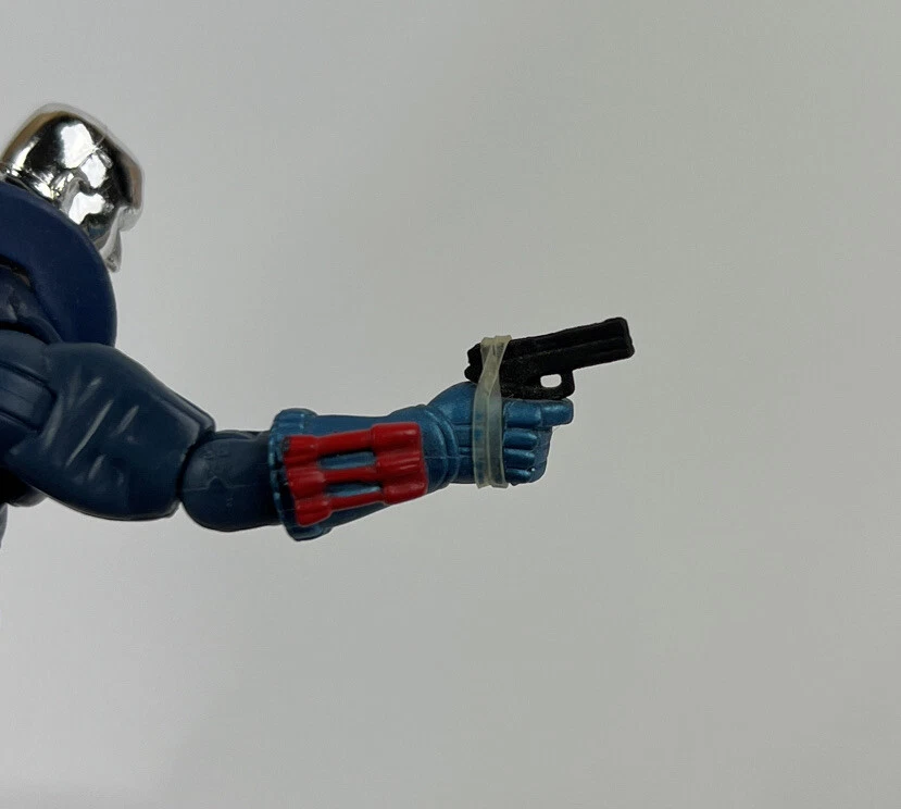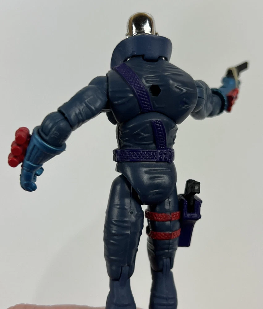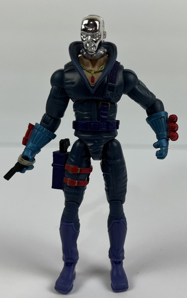 Destro Comic Book GI Joe CUSTOM 25th anniversary Cobra V22 HEAD V17 BODY The figure is used but still in great condition. (see pictures) The figure stands on its own without any issues. (see pictures) The figure comes with 2 guns. One in its hand, held by a rubber band, and the other in the holster. (see pictures) There are minimal scuff marks. (see pictures) The head and joints move freely without any issues. (see pictures)