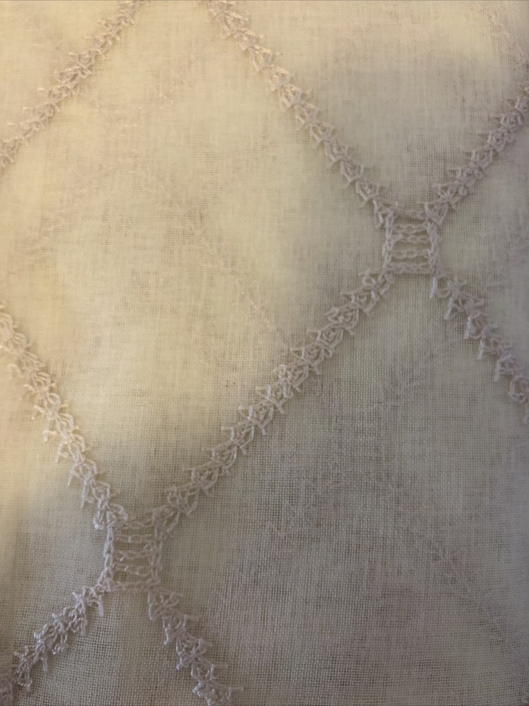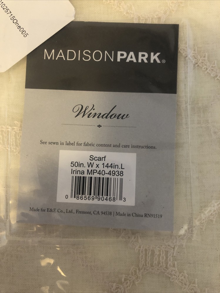 Diamond sheer embroidered wibdow scarf. Measure 50”x144”. Light wibdow scarf with diamond embroidered pattern. Color light yellow almost cream.condition is new / other/ open box. Free shipping.