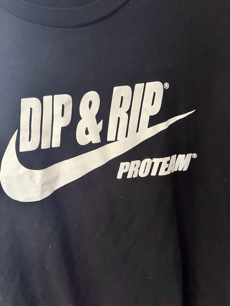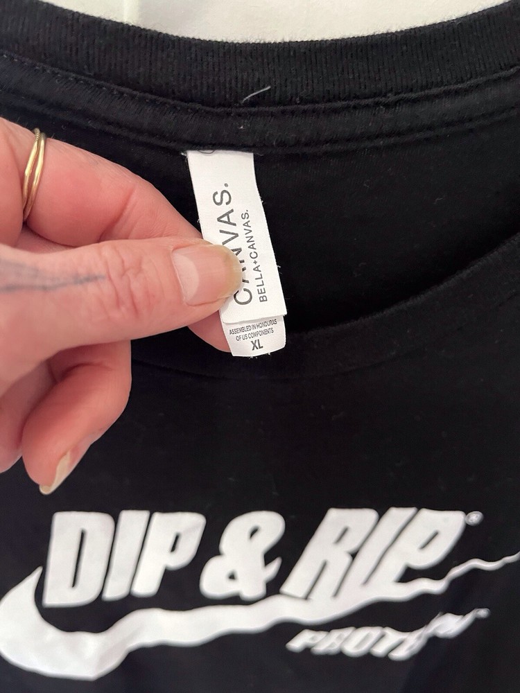 A brand new Tattoo T-shirt, made by the iconic R andy Randerson in Oklahoma . This T-shirt proves you are professional Tattooer and do know how to dip and rip and that you are on the pro team. If you don’t know how to dip and rip do not buy this shirt because then you will be a poser. But if you are a real Tattoo professional or want to give this to a professional it’s the perfect shirt for you . It’s a size XL and it’s a true size. It’s in perfect condition and it’s never been worn . Get it today and start dipping and ripping.