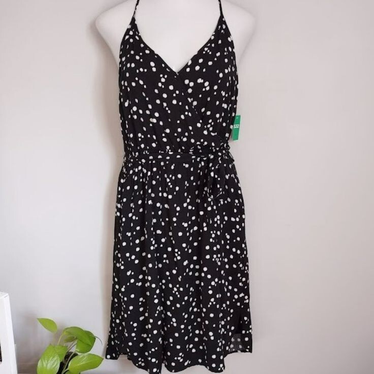 Dip Beach Days Women's L Strappy Faux Wrap Sundress Black w/White Splotches NWT. Please see photos for visual description and condition....