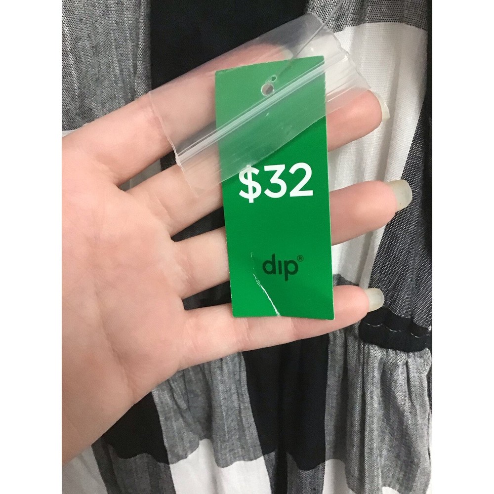 Dip Black, White, and Gray Dress Beach Days Women's Large NWT New with tags Perfect for the office or church Black, white, and gray summer-comfortable dress. Stretchy around the shoulders and chest! Measurements are approximate: Top of shoulder to hem 42 inches Armpit to armpit 17 inches (but stretchy). Materials: Shell- 55% cotton, 45% viscose Lining- 100% polyester. Garment care: machine washable! See tags for specific garment care instructions. New with tags and in excellent condition! No tears, stains, or holes! Smoke-free home!