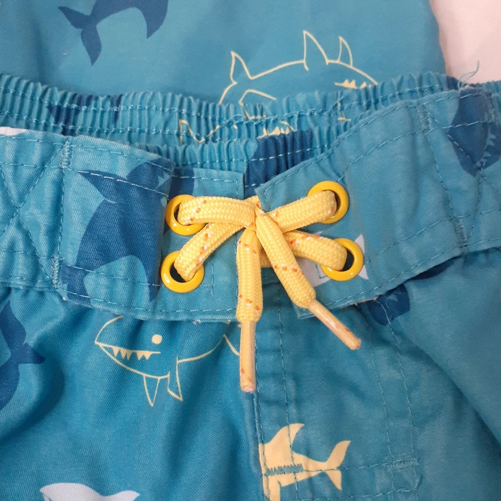 Dip Boy's Shark Themed Swim Trunks Color Colorful Sharks with a blue background. Condition - Good condition. Gently Used. Showing very little signs of wear. See photos. Size - Boy's large 12-14 Length - 17" Waist - 28" Inseam - 7" If you have any questions, please feel free to ask. Thank you for shopping at the Chadley Shop!!