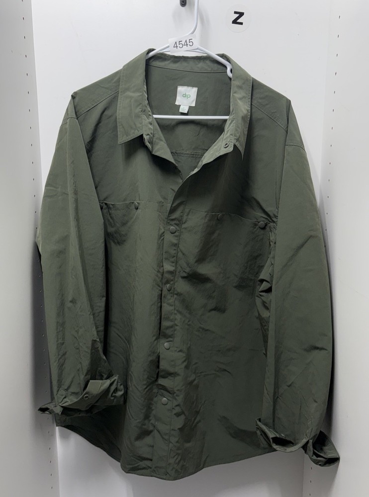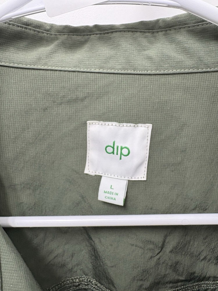 The Dip Brand Green Button Down Shirt in size L is a classic and stylish addition to any man's wardrobe. This button-up shirt features a button-down collar, perfect for a casual yet put-together look. The size L ensures a comfortable fit for a regular-sized individual, while the green color adds a pop of freshness to any outfit. Whether worn alone or layered, this shirt is versatile and can be dressed up or down for various occasions.