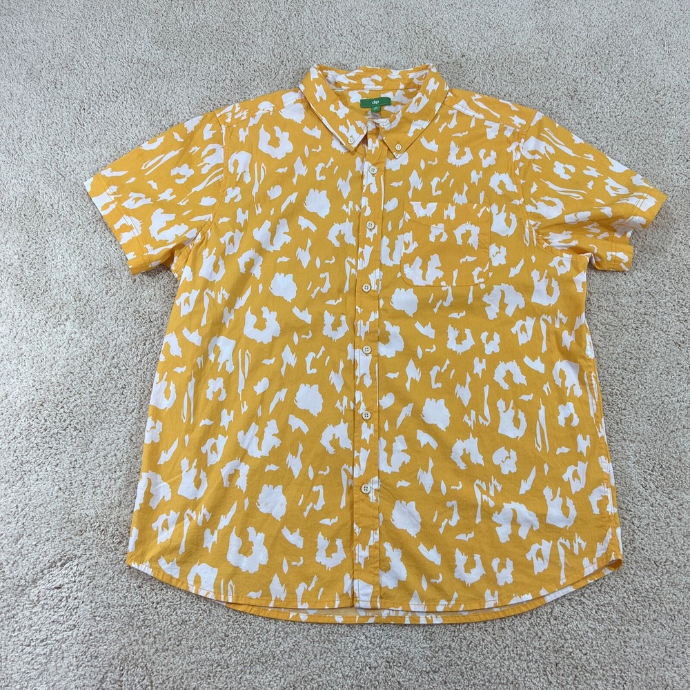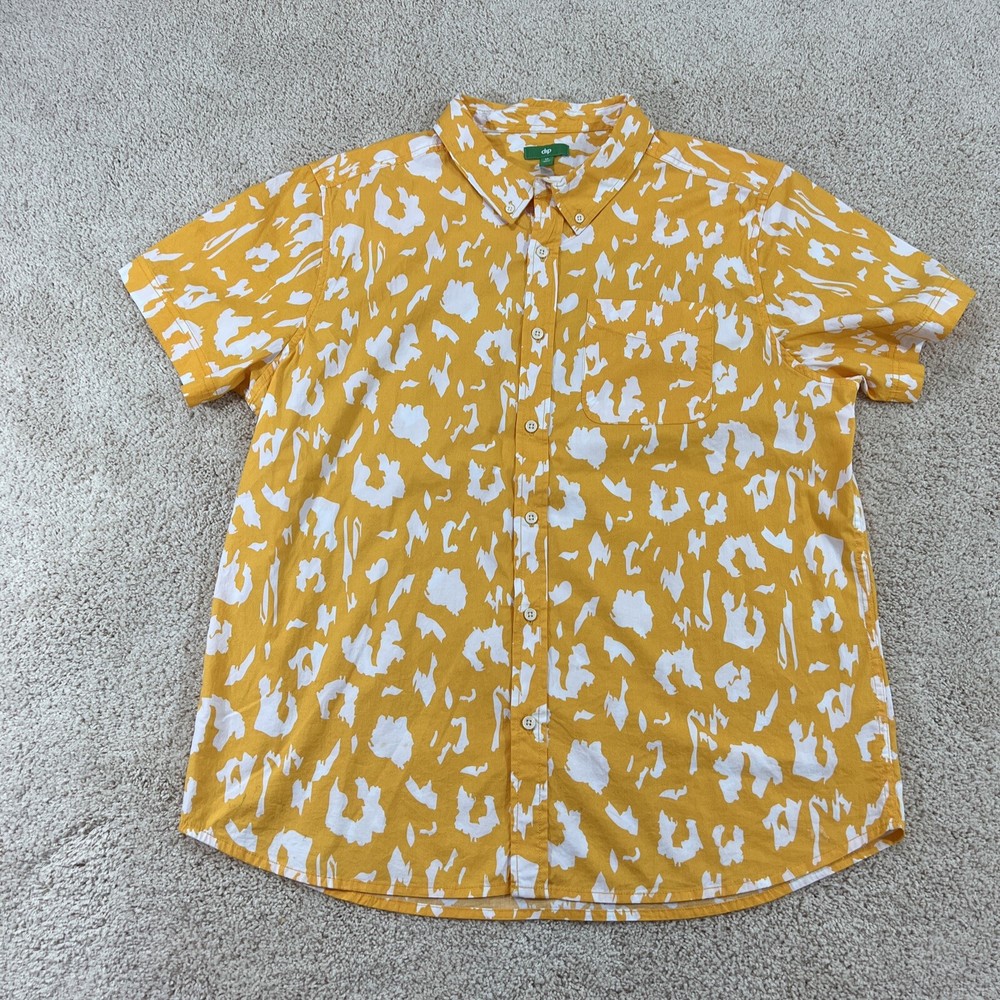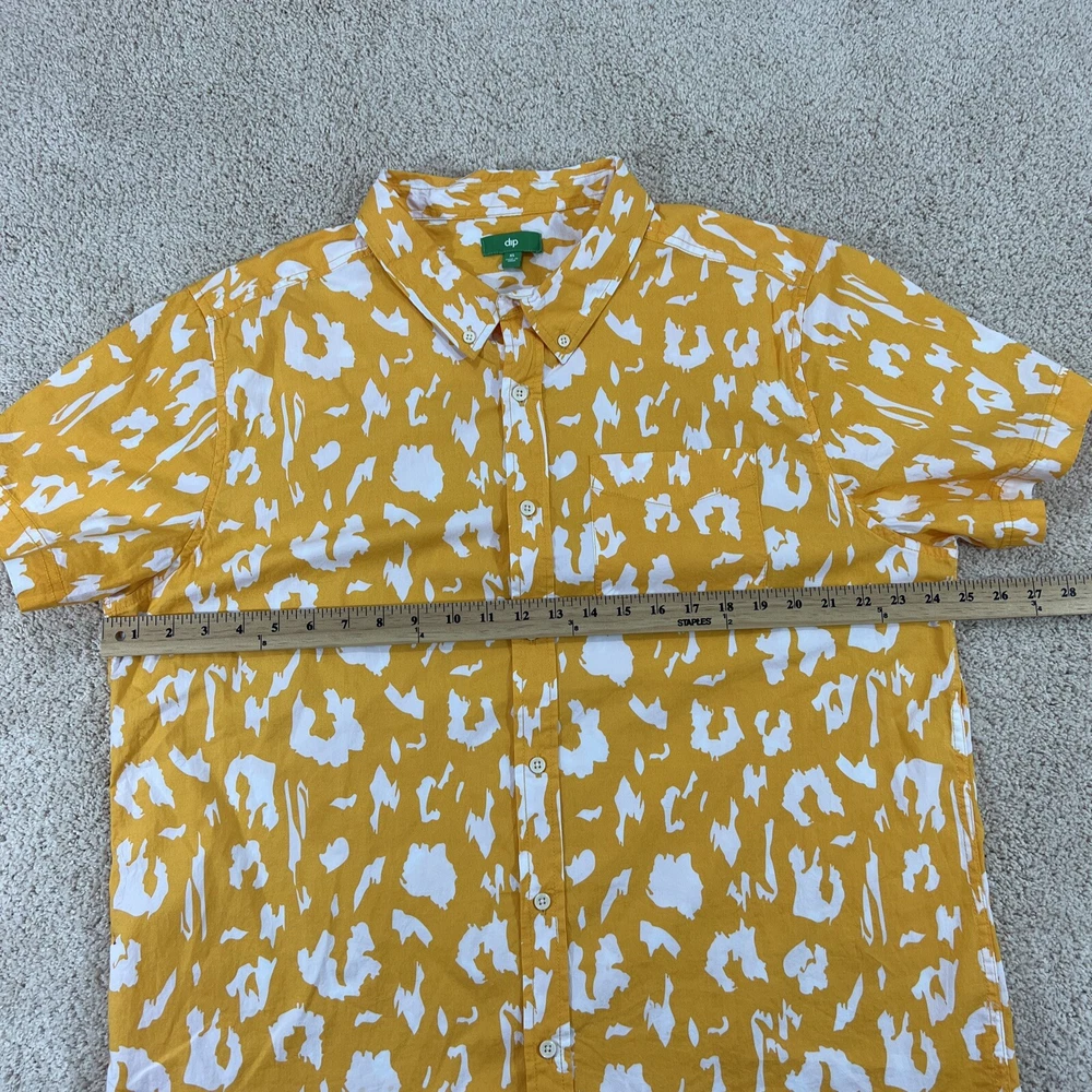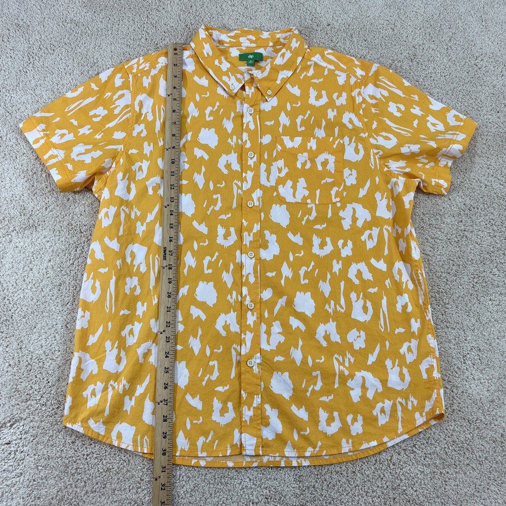Dip Brand Mens Shirt XL Yellow White Short Sleeve Button Shirt Please use the zoom feature to closely inspect pictures Great Condition 97% Cotton Measurements are in pictures Please Look at all pictures for more condition details. Same day or next day shipping in most cases Any questions please ask 1001