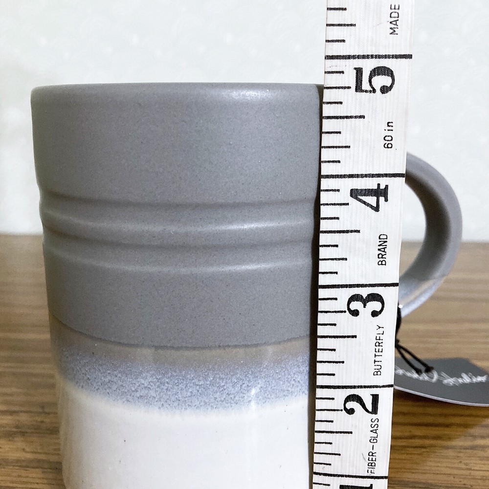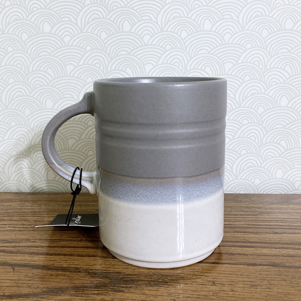 Beautiful ombre dip dye coffee mug from Dwell Studios. Matte grey, glossy white. Due to the hand crafted nature, please expect variations between each piece. Measures approx 4.75"H x 3.5"W. Capacity 18 fl oz. Nice mug for enjoying a cup of your favorite coffee, tea, cider or cocoa. Makes a great gift, or treat yourself! Please note: Colors may appear different based on your screen settings.