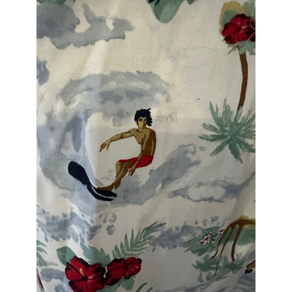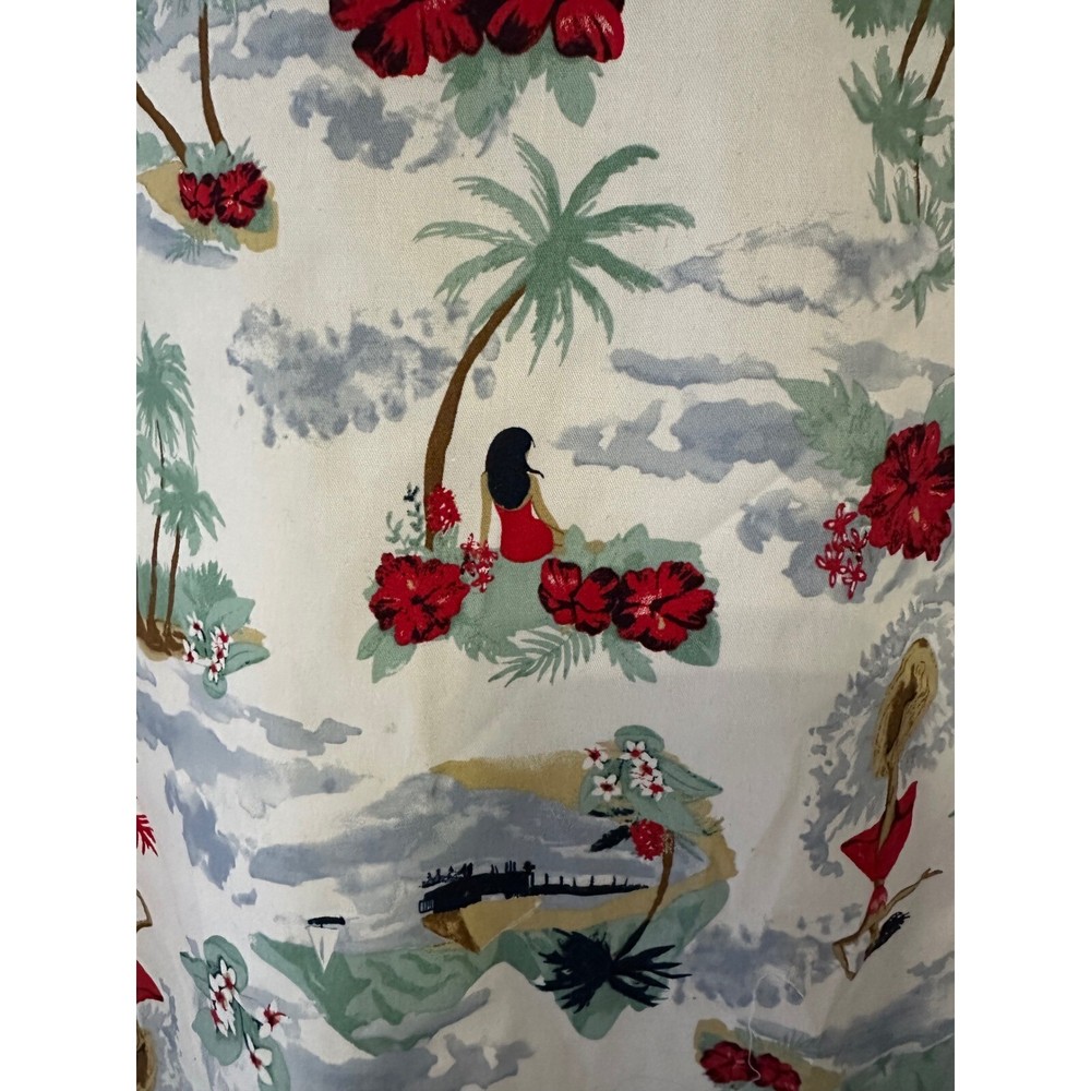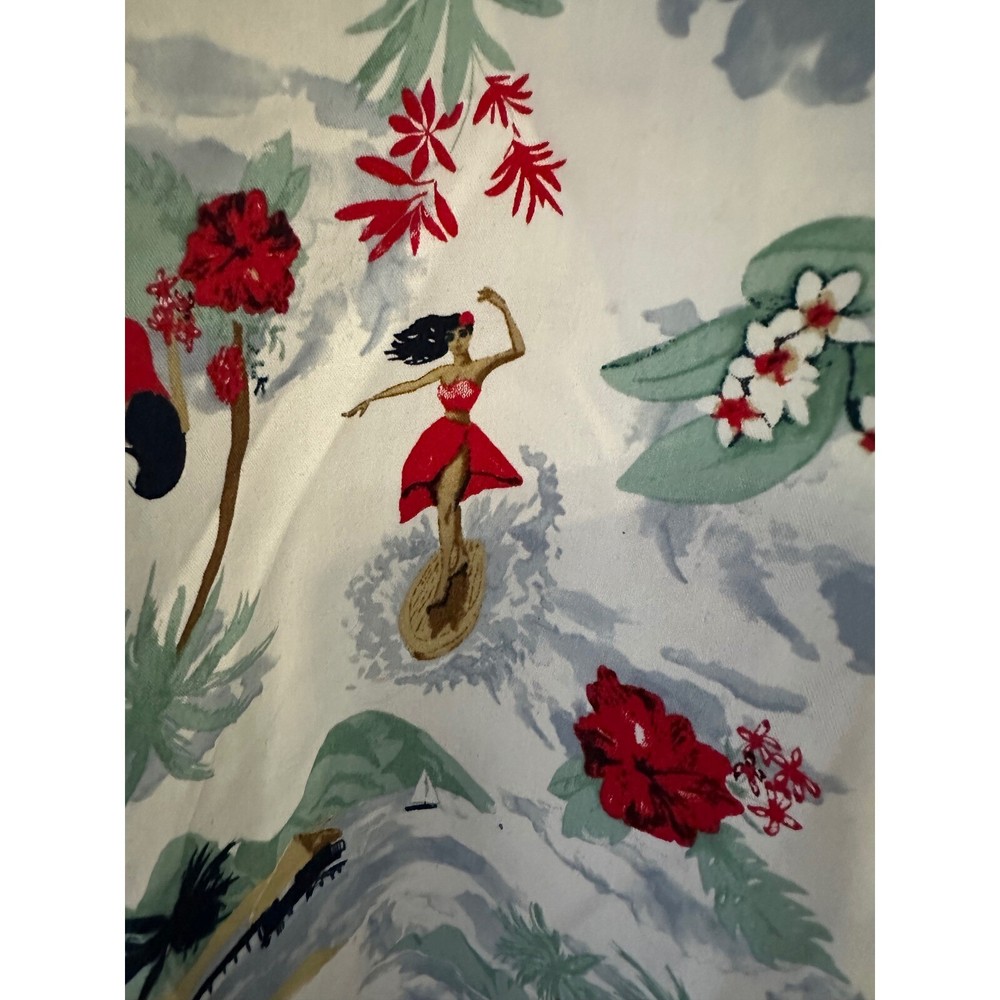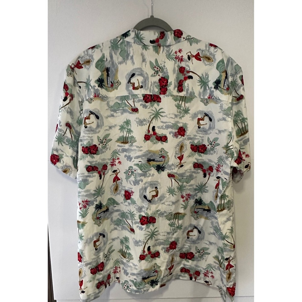 A vibrant Hawaiian shirt featuring a playful tropical design. This eye-catching shirt showcases scenes of hula dancers, surfers, palm trees, and hibiscus flowers, creating a relaxed, island-inspired vibe. The camp collar and short sleeves add to its casual appeal, making it perfect for warm weather. Ideal for a luau, beach party, or simply adding a touch of vacation flair to your everyday wardrobe. Item:B229 Color: White Department: Men Sleeve Length: Short Sleeve Pattern: Floral Material: Polyester, Viscose, Linen Fit: Regular Features: Lightweight, Breathable, Easy Care Character: Hula Girl, Surfer Type: Button-Up Occasion: Casual, Party/Cocktail, Travel Keywords: Hawaiian shirt, tropical shirt, camp shirt, button down shirt, short sleeve shirt, men's shirt, hula girl, surfer, beach shirt, vacation shirt, island shirt, dip shirt, XLT shirt