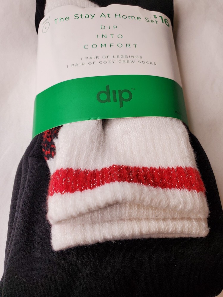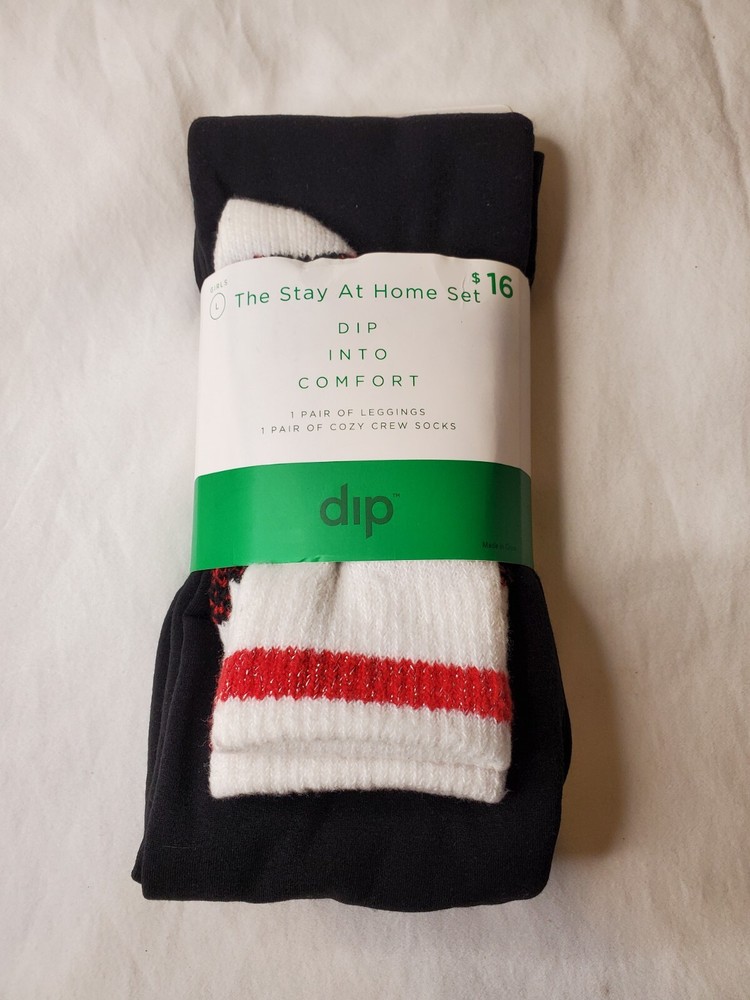 Dip Into Comfort Stay At Home Set Girls Leggings And Socks Size Large. Black leggings White and red crew socks Great for stocking stuffer.