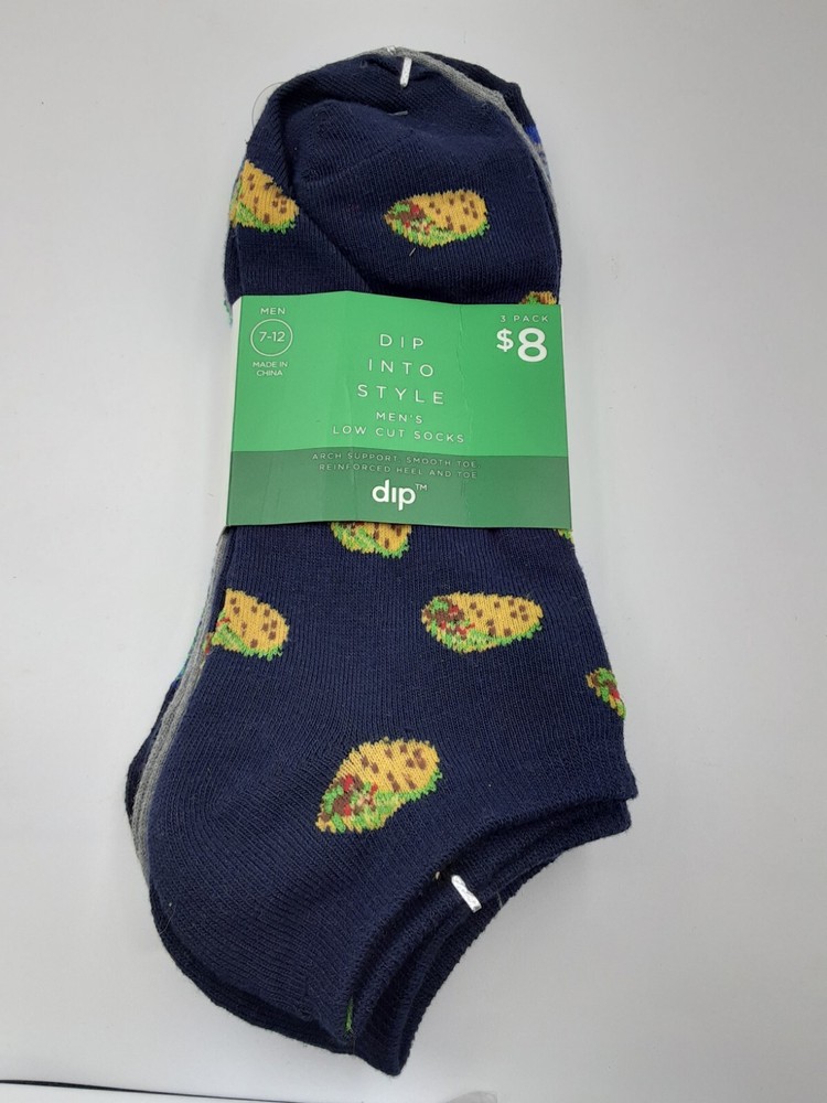 Dip Into Style Men’s Quarter Socks 3 Pack Size 7- 12 Brand New, Multi color