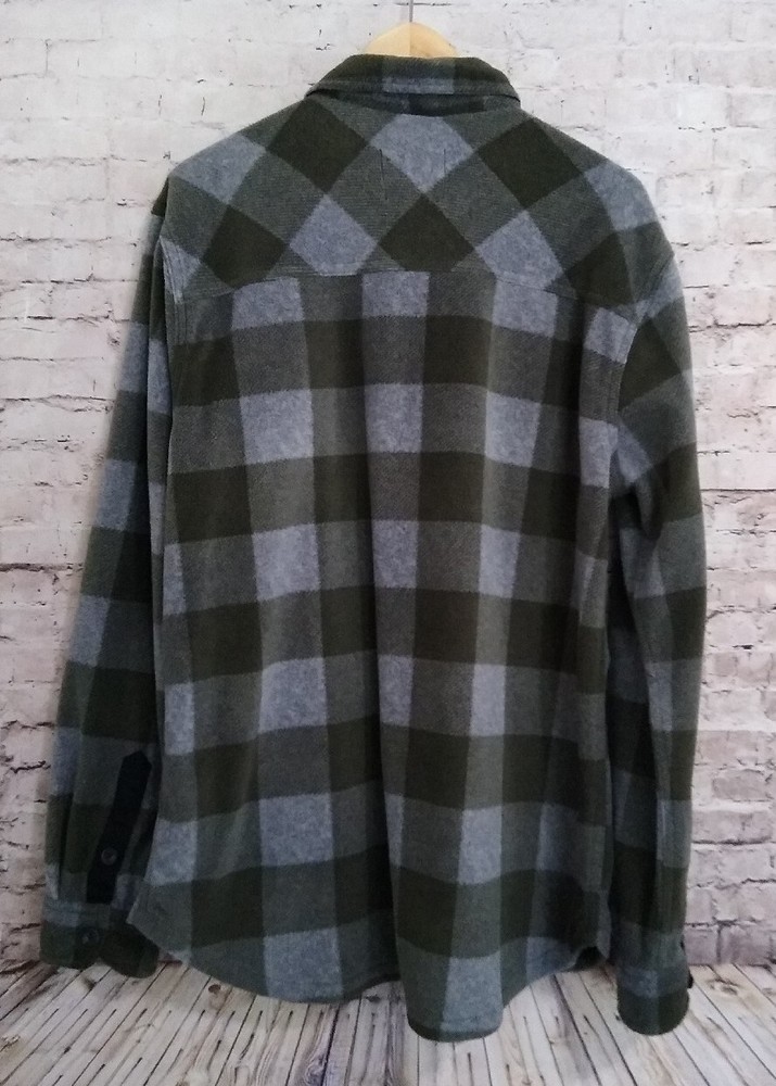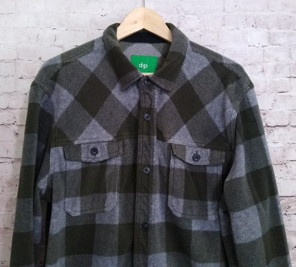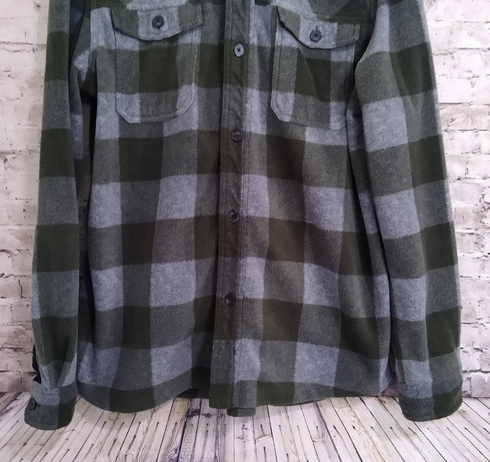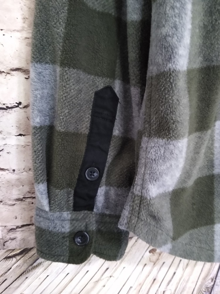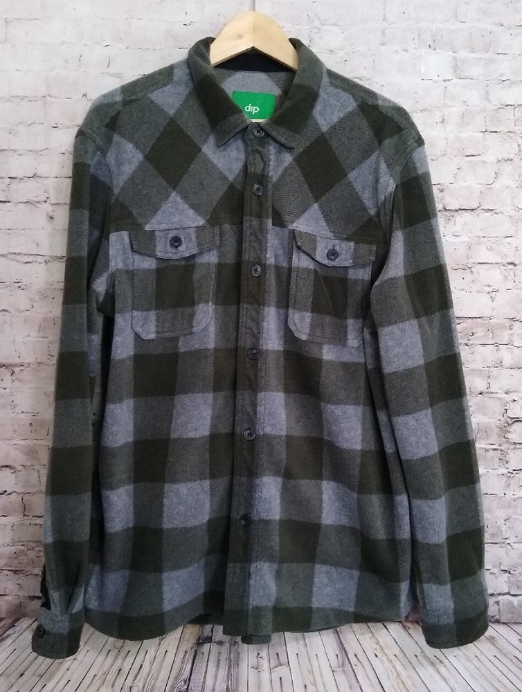 Dip L/S Fleece Button Up Shirt Green/Gray Plaid 2 Chest Pockets Large 23" pit to pit 31" long Thanks for looking