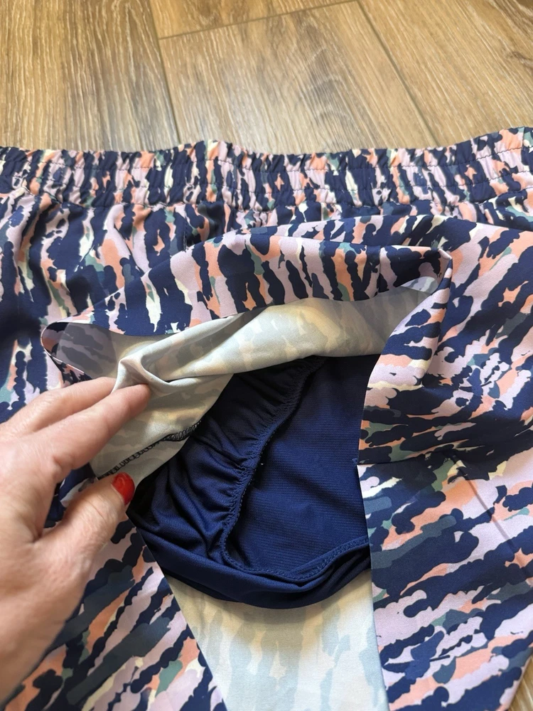 Dip Lined Gym Shorts Womens Size X-Large Blue Splatter Multi Color Sports. Condition is Pre-owned - Excellent. Shipped with USPS Ground Advantage.
