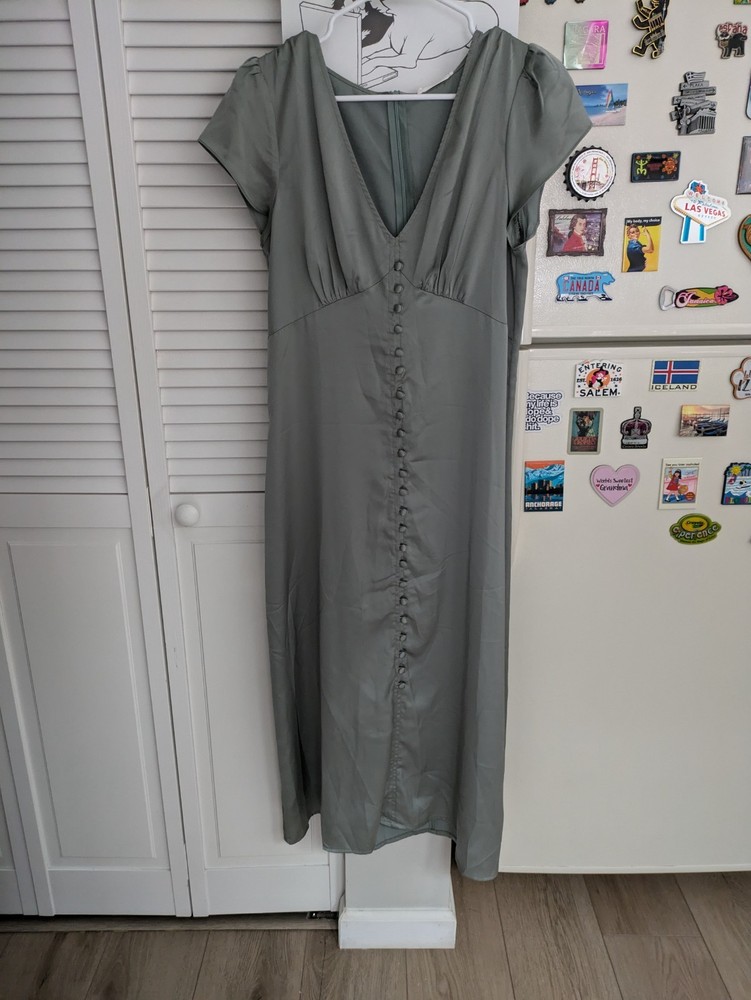 Dip Linen Blend Dress Women Large Sage Green Lagenlook Scandi Chic Boho Natural...