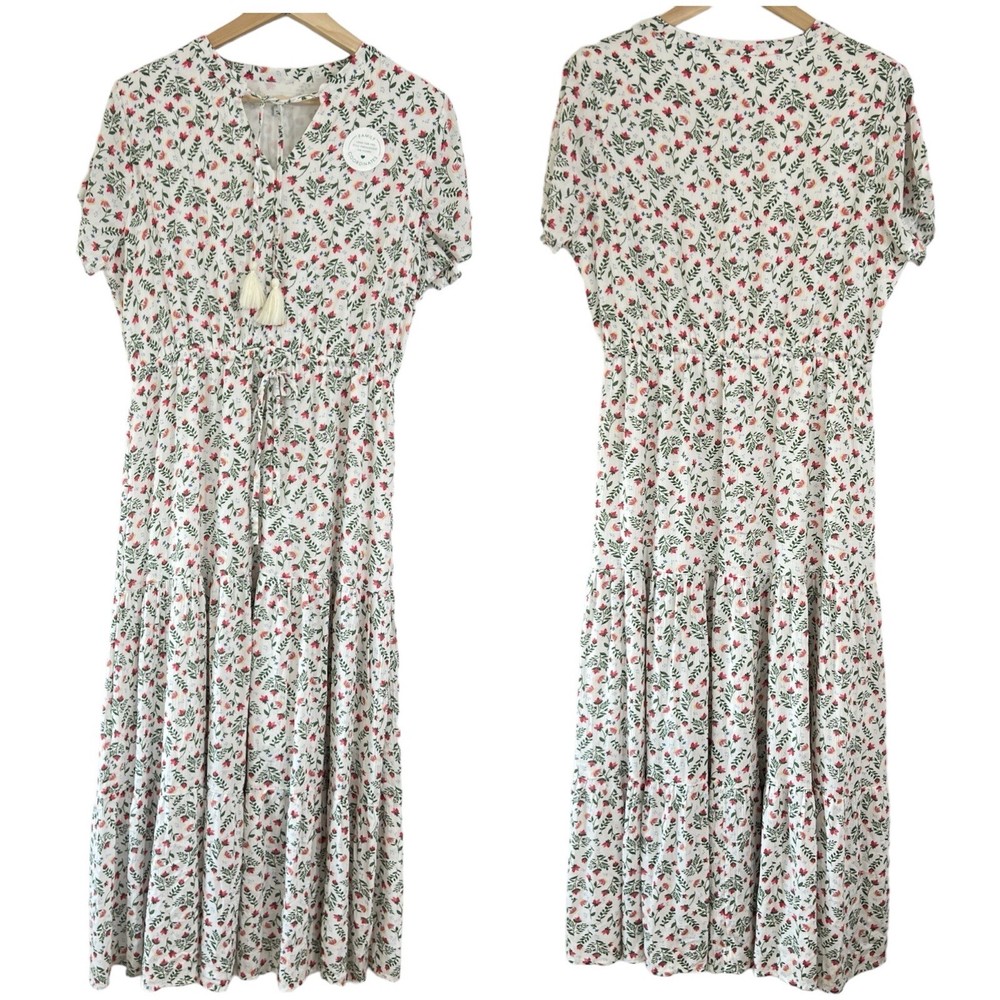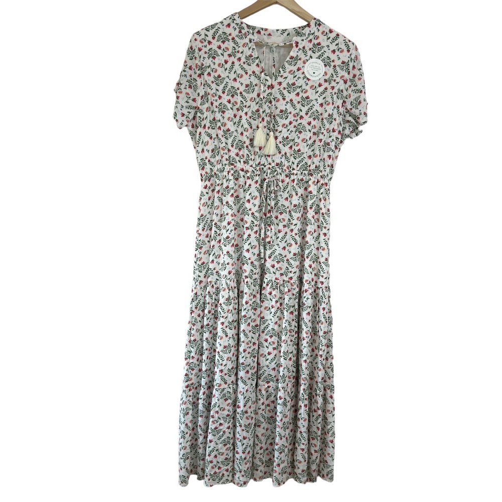 Dip Maxi Floral Dress Large Cap Sleeve Tassel Neckline Cottagecore Prairie Boho It is in Great Condition. There are no stains or damage. It is clean and odor-free. I ship out items Monday - Friday I took all the photos, and they are of the actual items for sale. Thanks for Visiting my Store!
