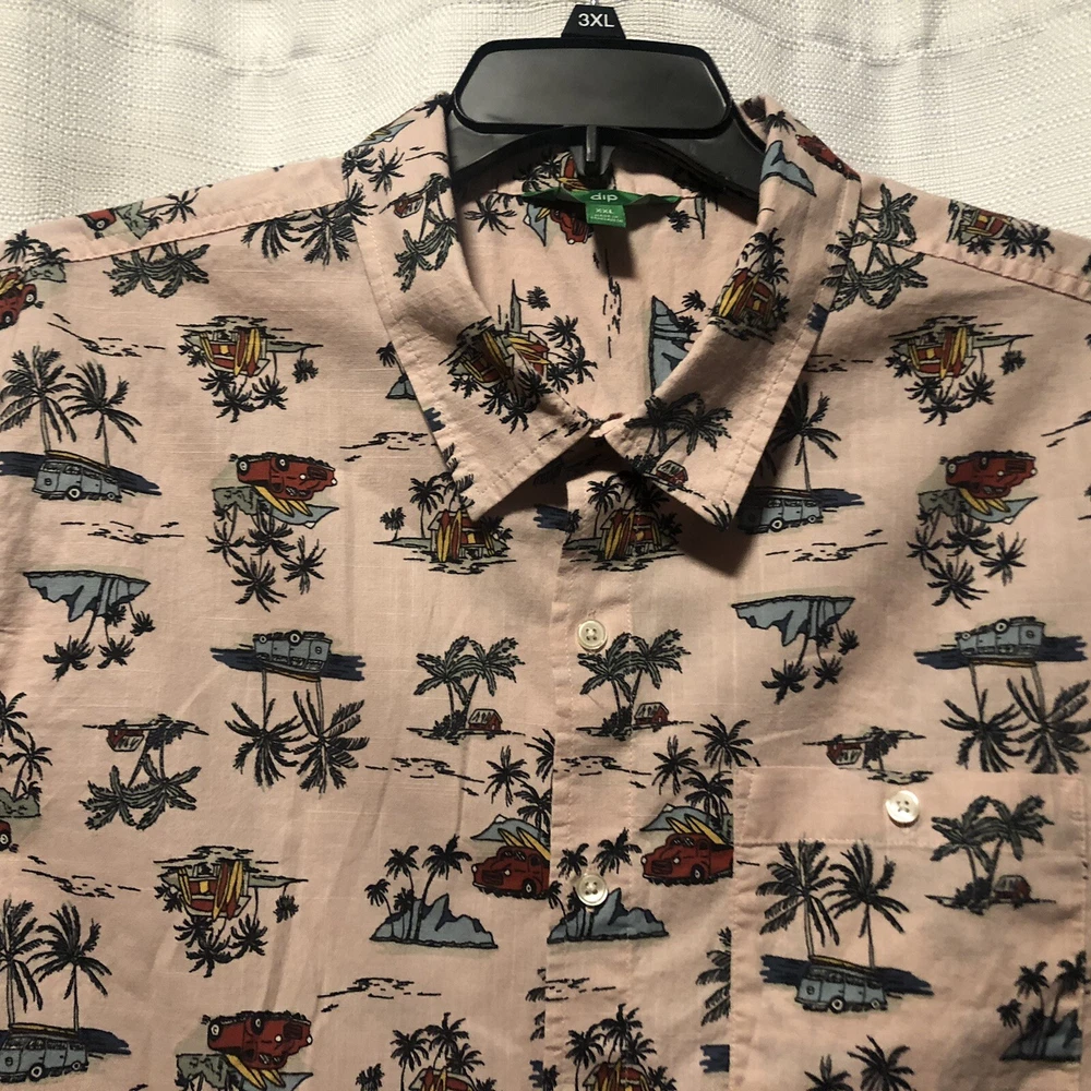 Dip Men’s Casual Button Down Shirt Size XXL Large Surfers Campers Palm Trees Short Sleeve Made Of Cotton Front Chest Pocket Chest Measures 50 inches Length Measures 30 inches Very Good Pre-Owned Condition Check Out My Other Listings ! SHIPPING TIME: We ship out all orders within 1 business day of your payment clearing. Any And All Clothing Items Have Been Washed, Laundered And Cleaned In Compliance With eBay Policy.