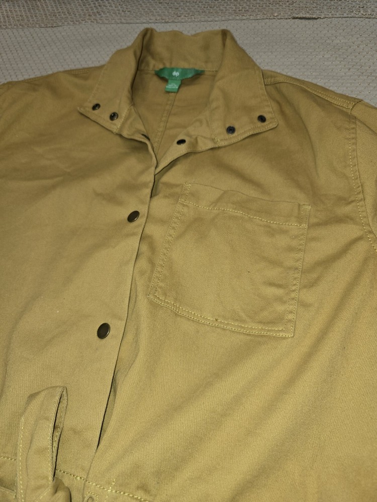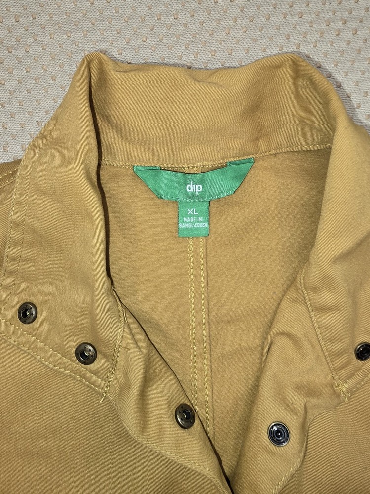 This military-style jacket from Dip is a must-have for any fashion-forward woman. The vibrant yellow color and solid cotton blend fabric make it perfect for casual occasions in fall, winter, or spring. The mid-length coat features long sleeves and a snap closure, with pockets for added convenience. The jacket is machine washable and has a regular fit, making it easy to wear and care for. It is available in women's size XL and is made in China. Whether you're looking for a statement piece or just a comfortable jacket, this Dip military jacket is a great choice.