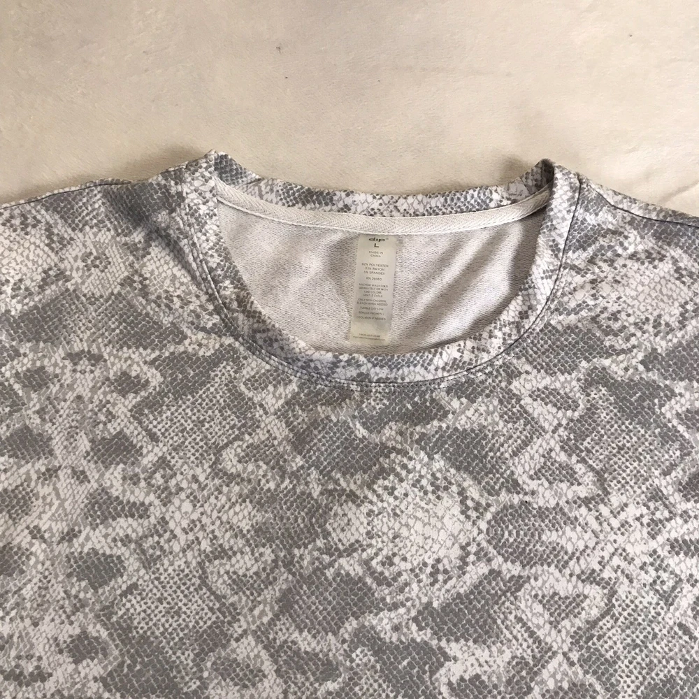 Dip Round Neck sweat shirt Women’s Size L animal print gray pullover long sleeve made in China polyester, Rayon ,Spandex machine wash measurements chest : 23 length : 23 see pictures for more informat...