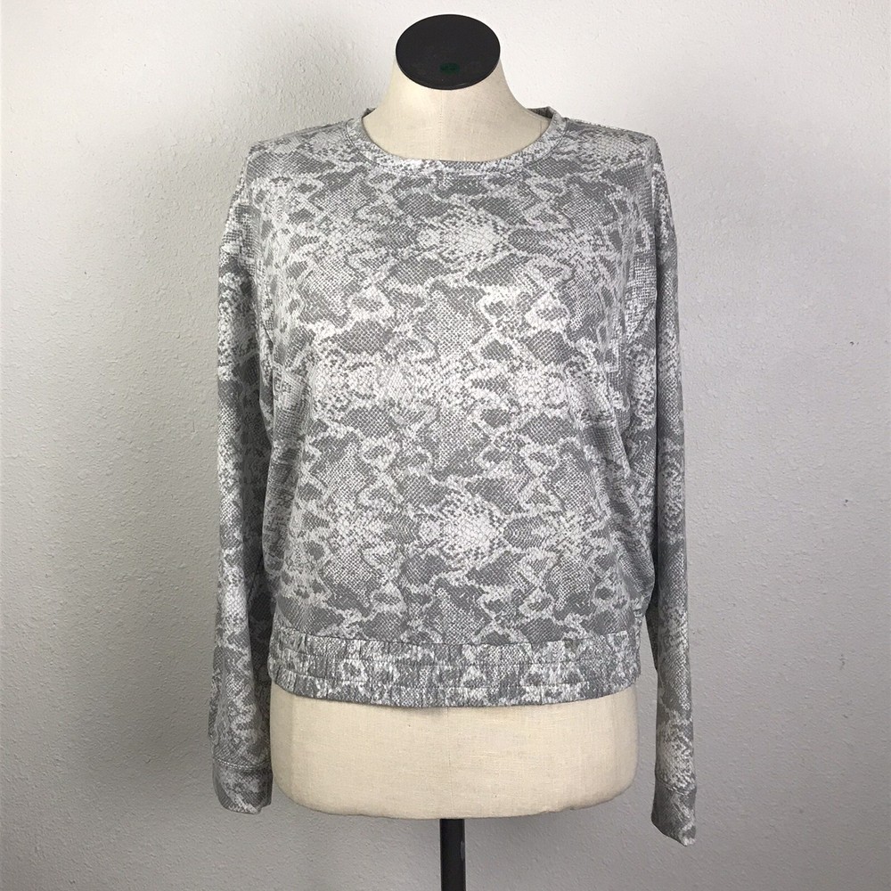 Dip Round Neck sweat shirt Women’s Size L animal print gray pullover long sleeve made in China polyester, Rayon ,Spandex machine wash measurements chest : 23 length : 23 see pictures for more information (B-174)