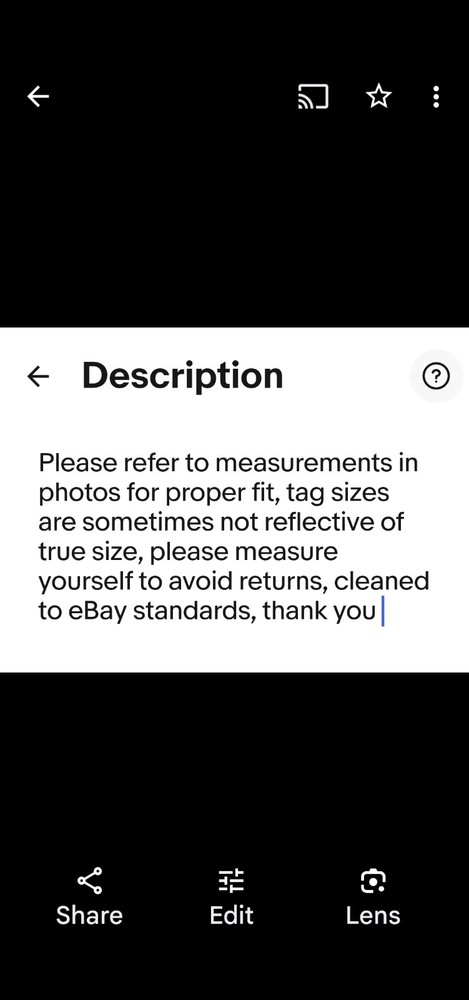 Please measure yourself to avoid returns tag size is not always reflective of true size measurements in photos for proper fit cleaned to quality standards thank you 3317...