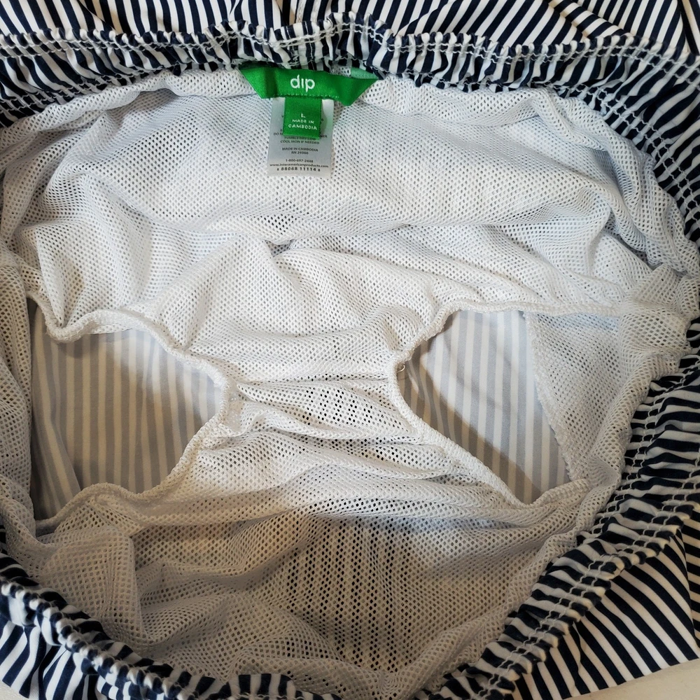 <![CDATA[<div>Dip Shorts Mens Large Striped Drawstring Swim Shorts Polyester Pockets Pre-owned in good condition. Style Profile: Summer Casual Swim Vacation Pool Spring...