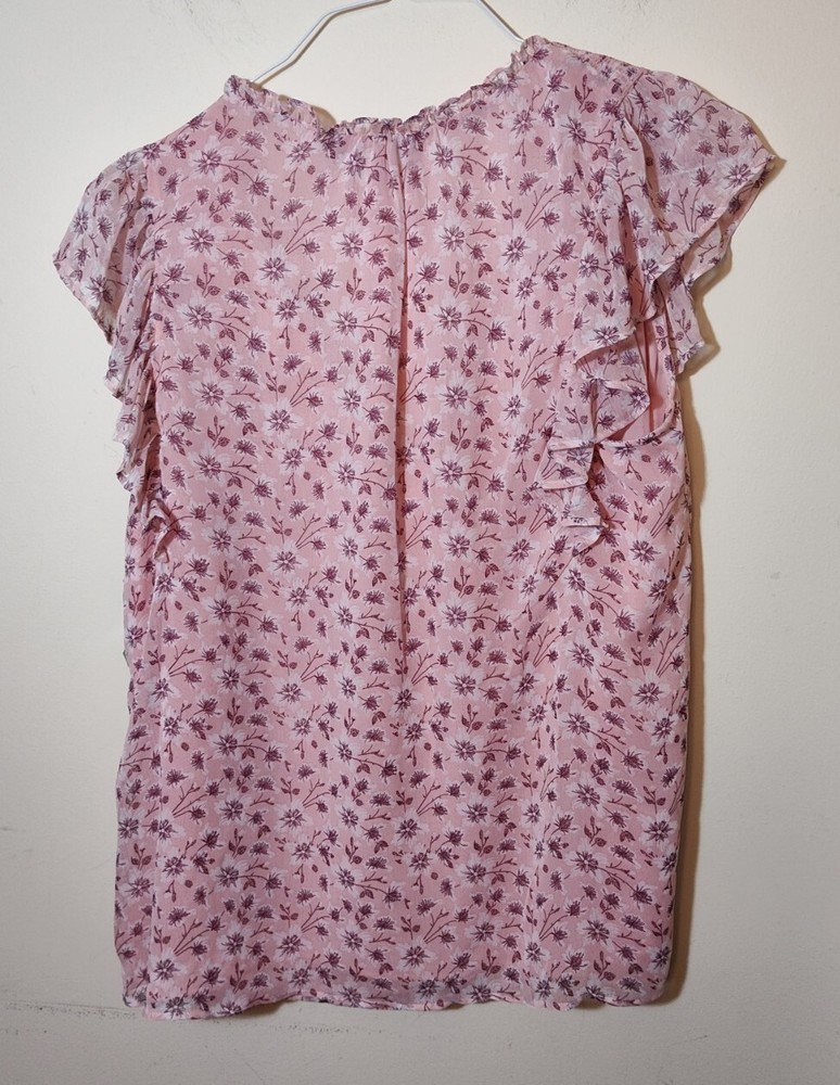 dip Pink Floral Top Size Large Flutter Sleeves New With Tags Measurements: laid flat Armpit to Armpit: 22.5in Nape of Neck to Hem: 27in Sleeve Length: 4in...