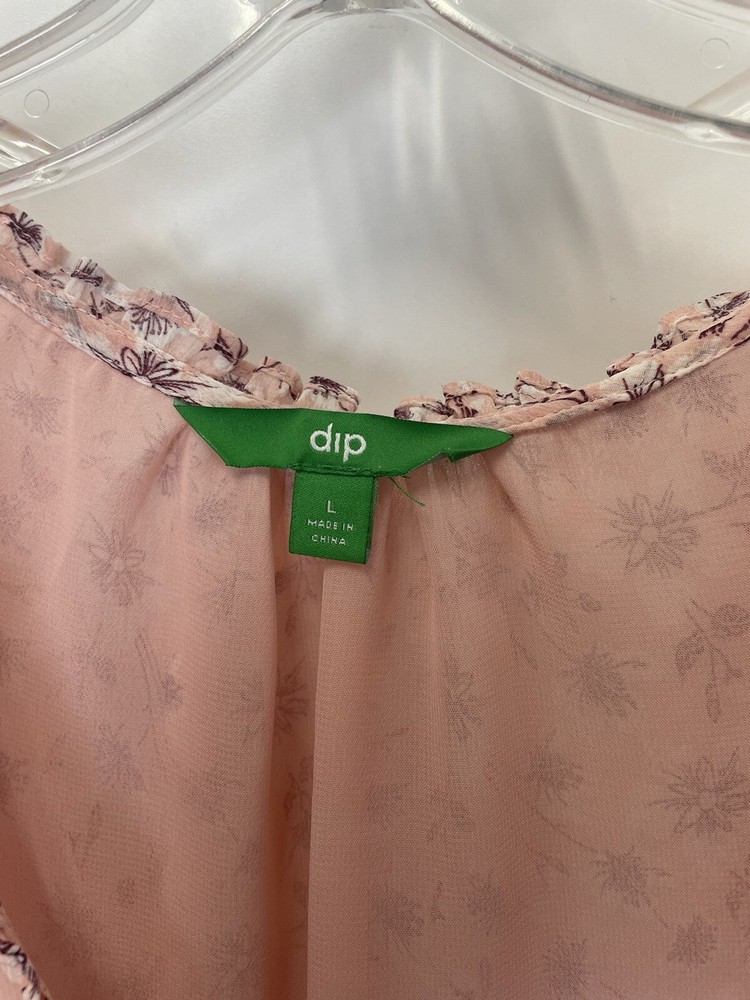 Elevate your wardrobe with this beautiful pink top from Flowers brand. The V-neckline and cap sleeves add a touch of elegance to the blouse. The layered floral accents give it a unique and feminine look. Made of 100% polyester, this lightweight and breathable top is perfect for summer and spring. It is easy to care for and has a pullover closure. The regular fit and size L make it suitable for any casual occasion or travel. Add this versatile blouse to your collection today!