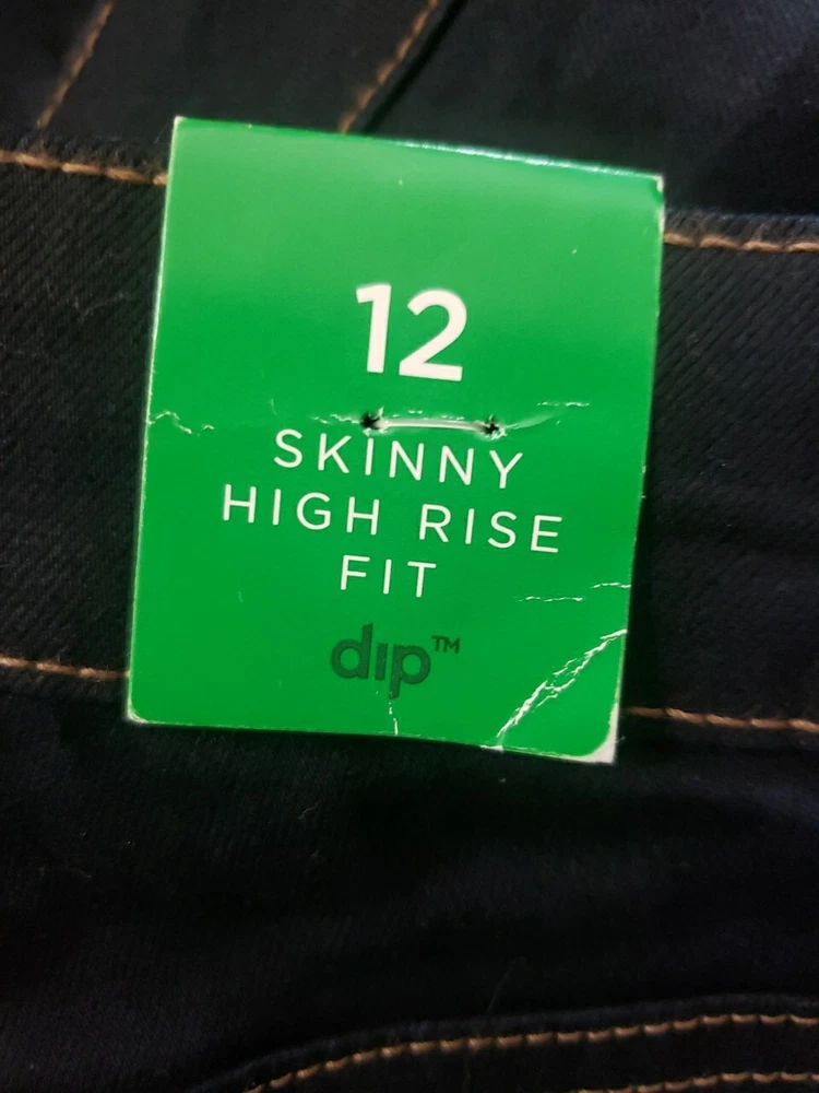 Dip Skinny High Rise Womens Sz 12 Black Stretch Pants NEW. Condition is New with tags. Shipped with USPS Ground Advantage. These jeans run small. I’m a size 12 and there too small.. I think more like ...