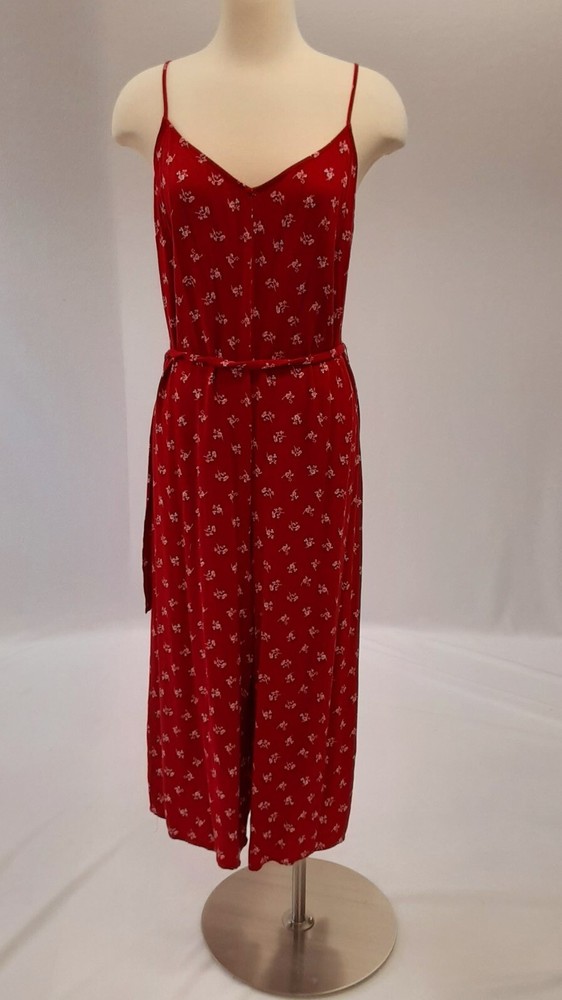 Trendy jumpsuit by Dip Relaxed fit and wide-leg design Comfortable and fashionable. Red and white floral pattern adds a touch of bohemian style V-neckline and back Spaghetti straps Perfect for a summer party or casual day out. Zip closure and adjustable straps, lightweight and unlined. Side slit on the pant leg Matching belt NWOT No stains, tears, rips or snags. See photos for details One owner Smoke & pet-free home Tag sz XL Approx flat measurements Underarm 20 Length 48 Front to crotch 22 We encourage buyers to measure for fit & not rely solely on tag size. We cannot accept returns for items that don’t fit, so please measure accordingly (plus it’s super disappointing if your expected item doesn’t fit like you wanted). If we miss something, we are sorry, please let us know within 7 days of receiving your item. Returns: Please return the item in the exact same condition it was photographed for listing and shipping. Packing & shipping process is videotaped for the protection of buyer & seller. Buyer pays return shipping