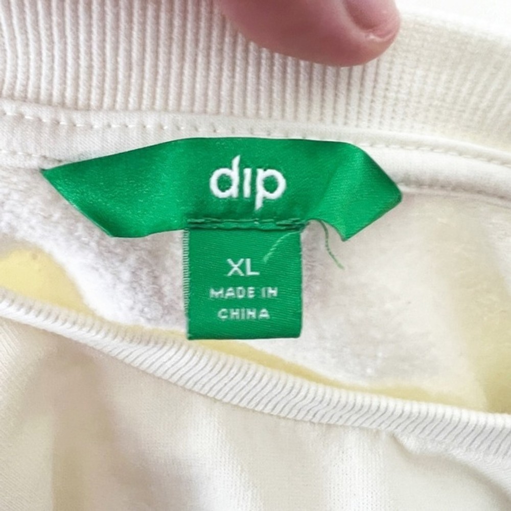 Dip Sweater Women Extra Large Cream Crew Neck Pullover Ruffle Sleeve Casual Size on tag: XL - please see measurements for best fit Chest: 24" Length: 24" * Good pre-owned condition - please check photos for full condition of item * I will ship this item out via USPS with a tracking number for confirmation. I ship every business day so expect a quick delivery!