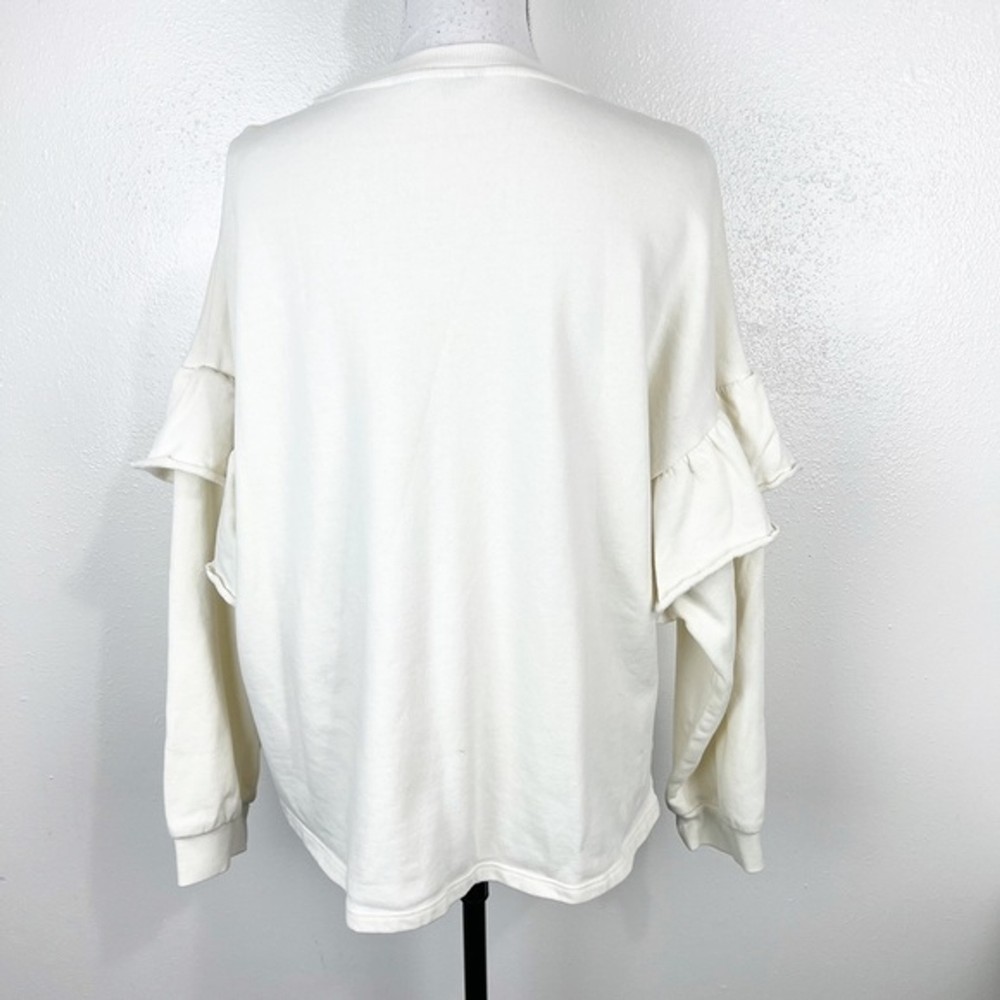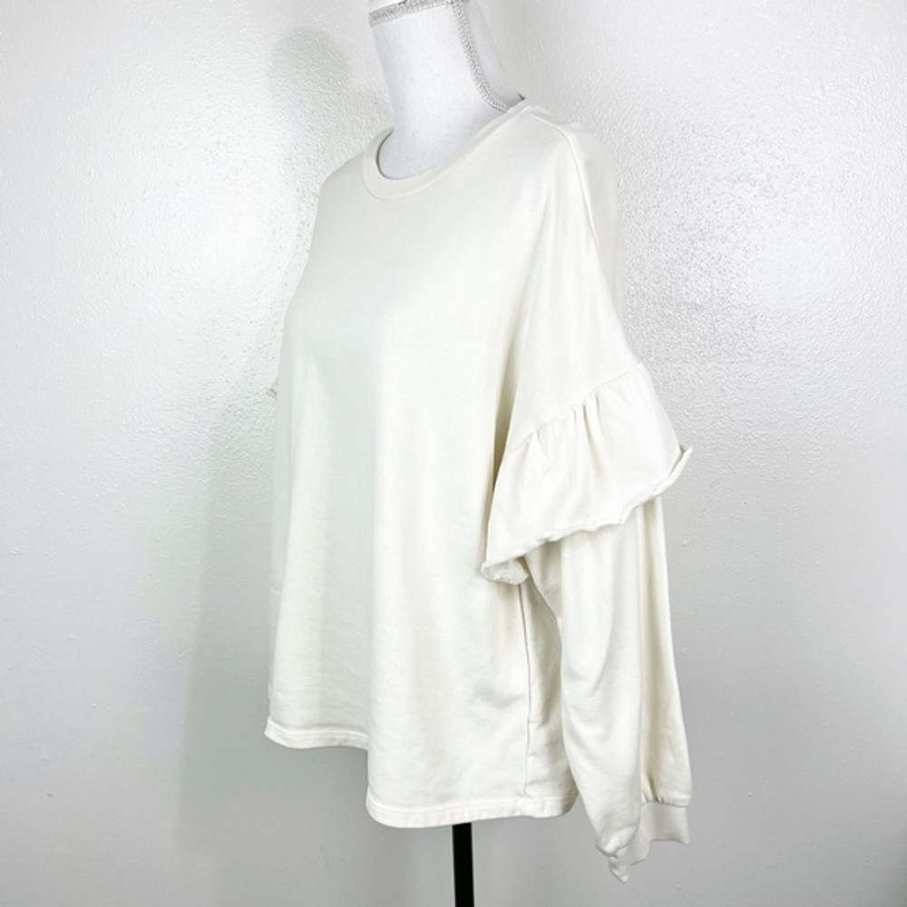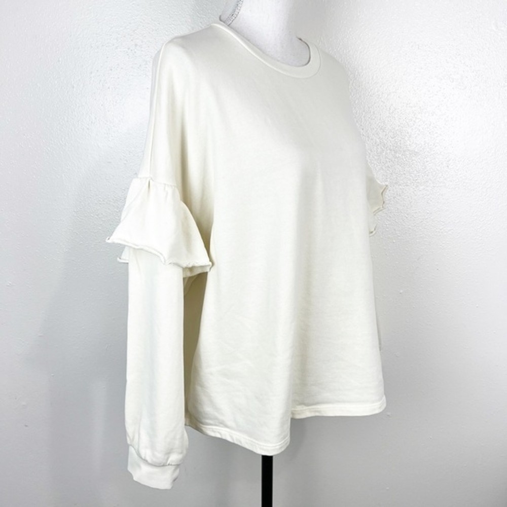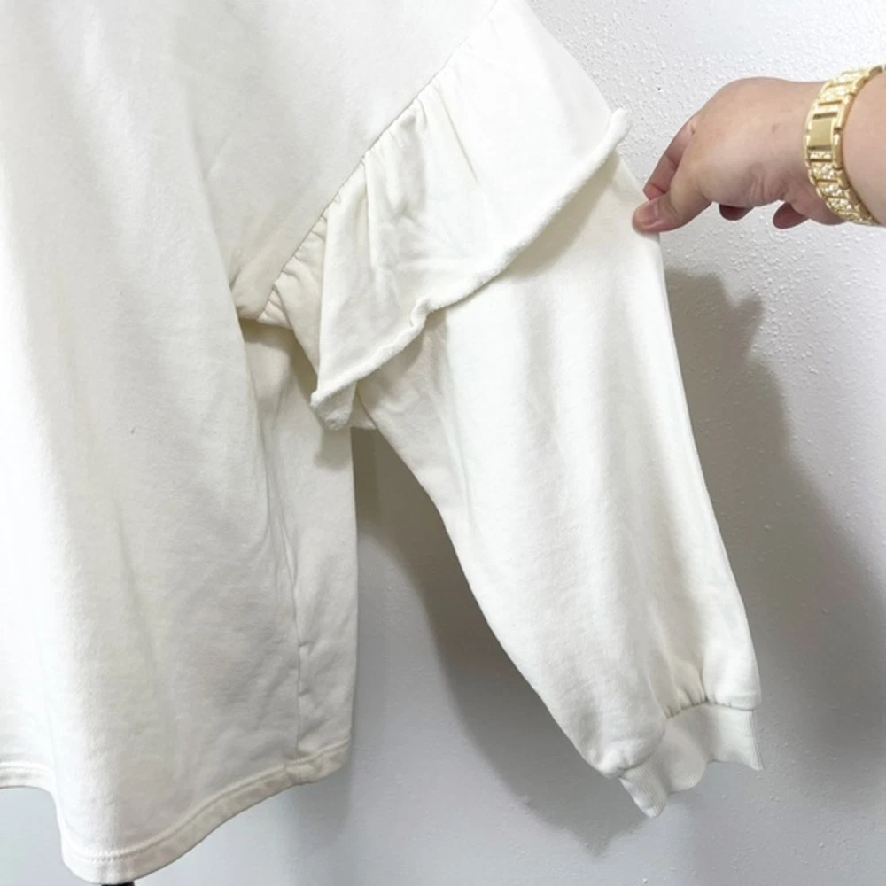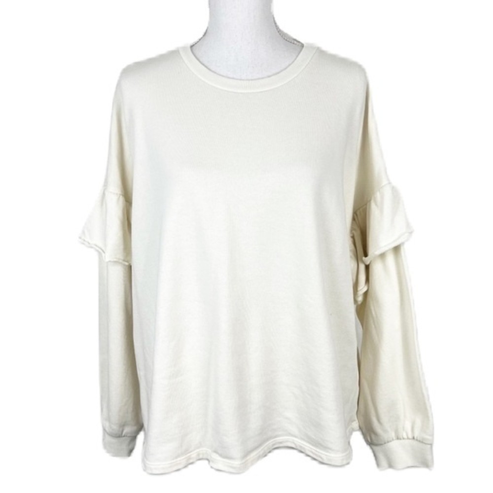 This cozy cream pullover is a dream—soft, flattering, and perfect for casual wear. The ruffle sleeves add a cute touch, and the XL fits just right. In great pre-owned condition, ships fast with tracking. Love it!